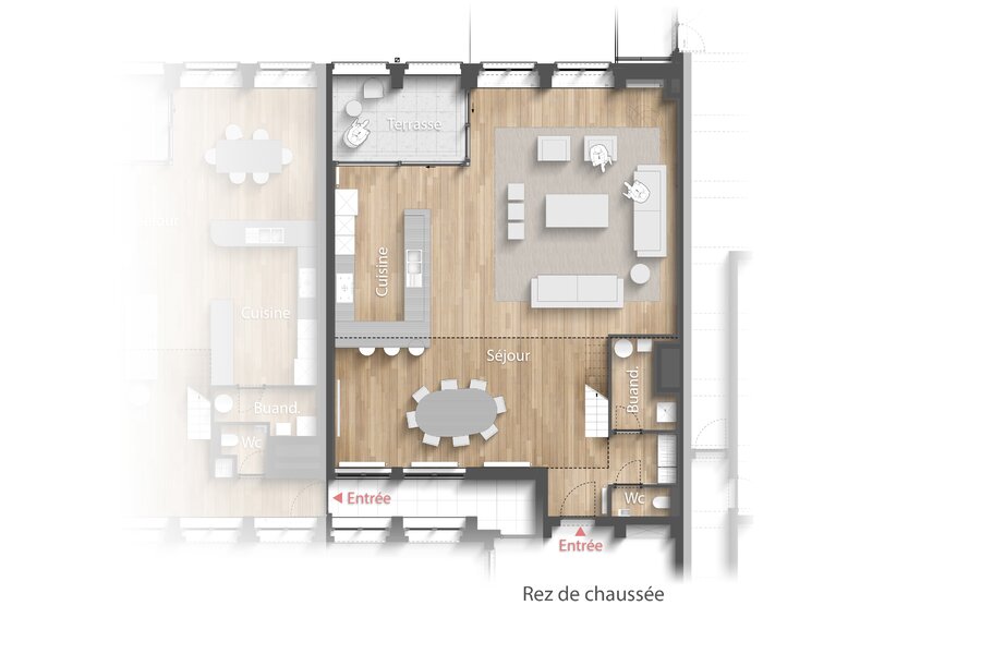 Possibilité 2 emplacements de parkings réservés (non inclus, à vendre ou à louer)