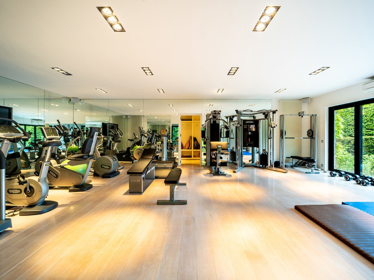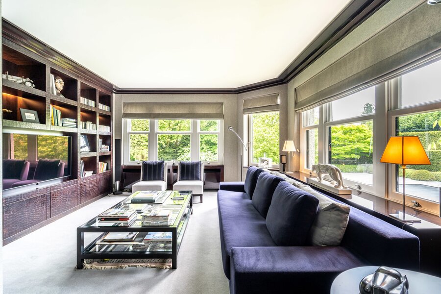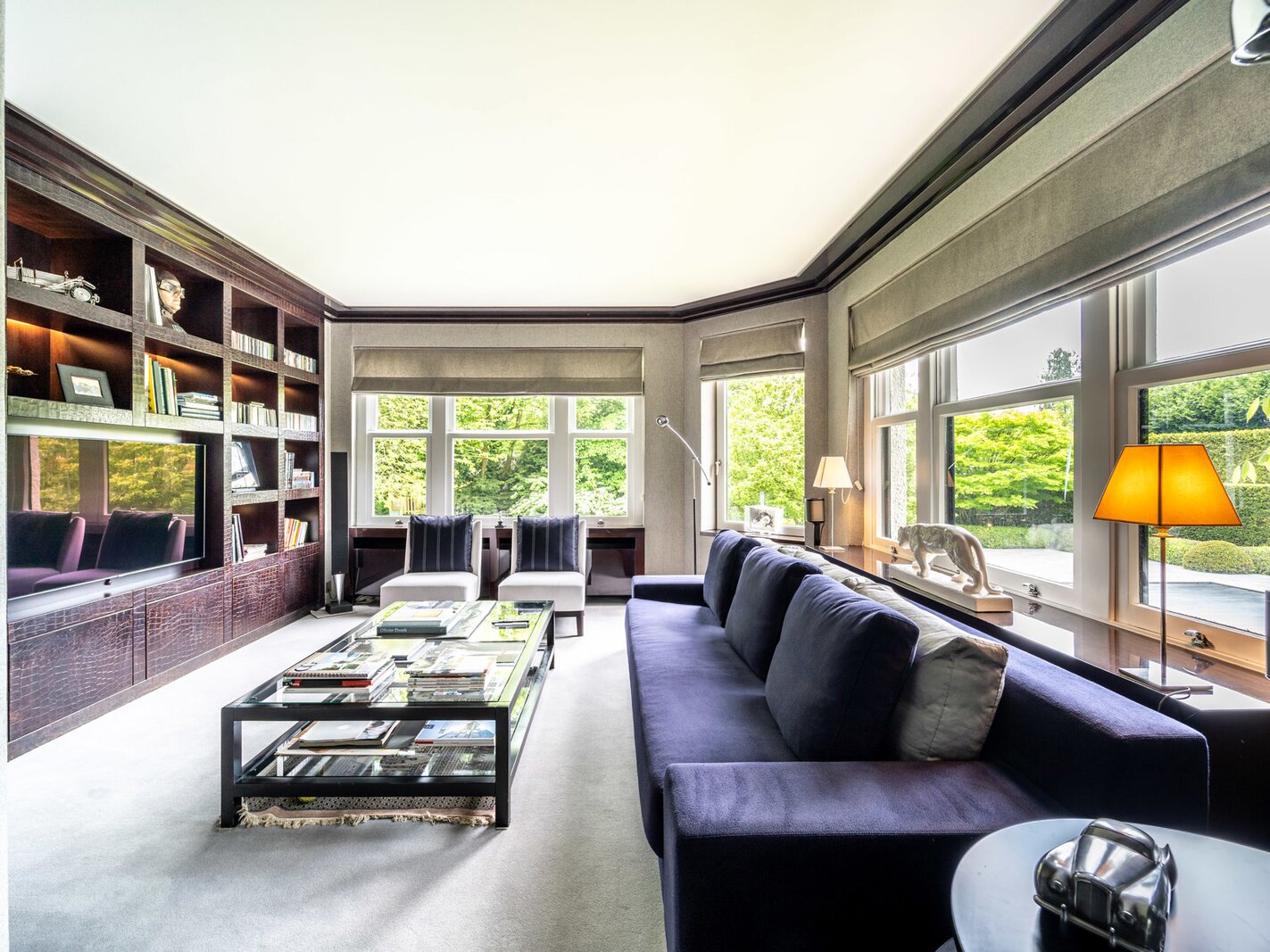 Elle développe une surface brute de ± 630 m² sur un terrain arboré de ± 67 ares idéalement orienté, élaboré par l'architecte Wirtz. Les réceptions se composent d'un salon avec feu ouvert, d' une salle à manger et d' une cuisine équipée en aluminium brossé et d'un vaste bureau avec espace salon/ bibliothèque. Au 1er étage, espace parental composé d'une chambre, d'un salon, d'un dressing et d'une salle de bain réalisés par Andrée Putman, ainsi qu'une autre chambre avec salle de bain attenante et terrasse. Au 2è étage, 2 chambres se partagent une salle de bains. En 1ere annexe, un appartement de service (studio) et buanderie indépendante. En 2eme annexe, salle de fitness et un bureau. A front de rue, une conciergerie avec salon/ salle à manger, cuisine et deux chambres. Un garage chauffé pour collectionneurs (7 voitures)