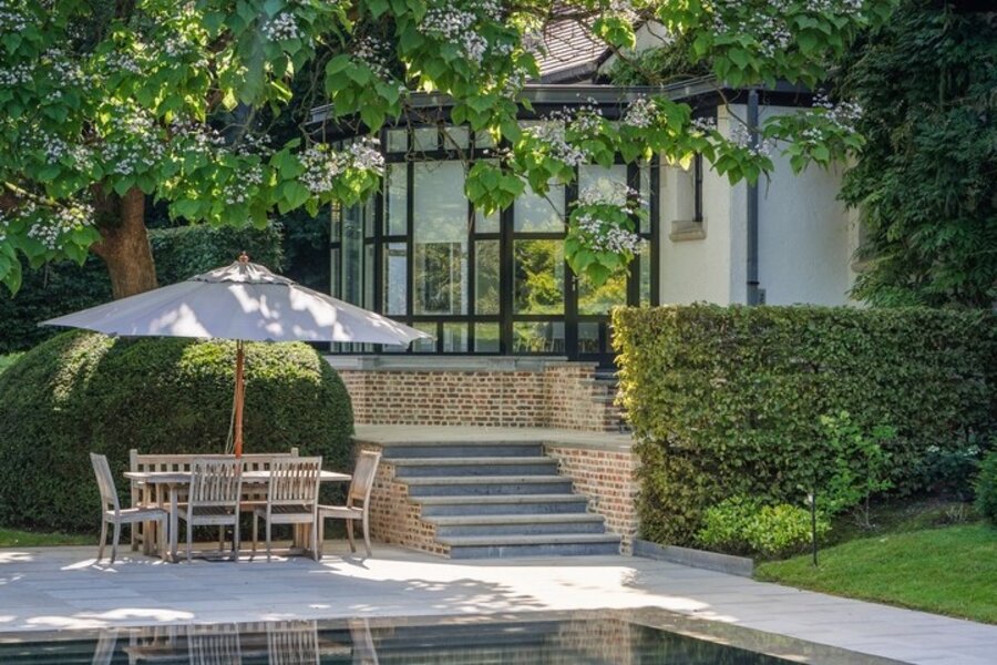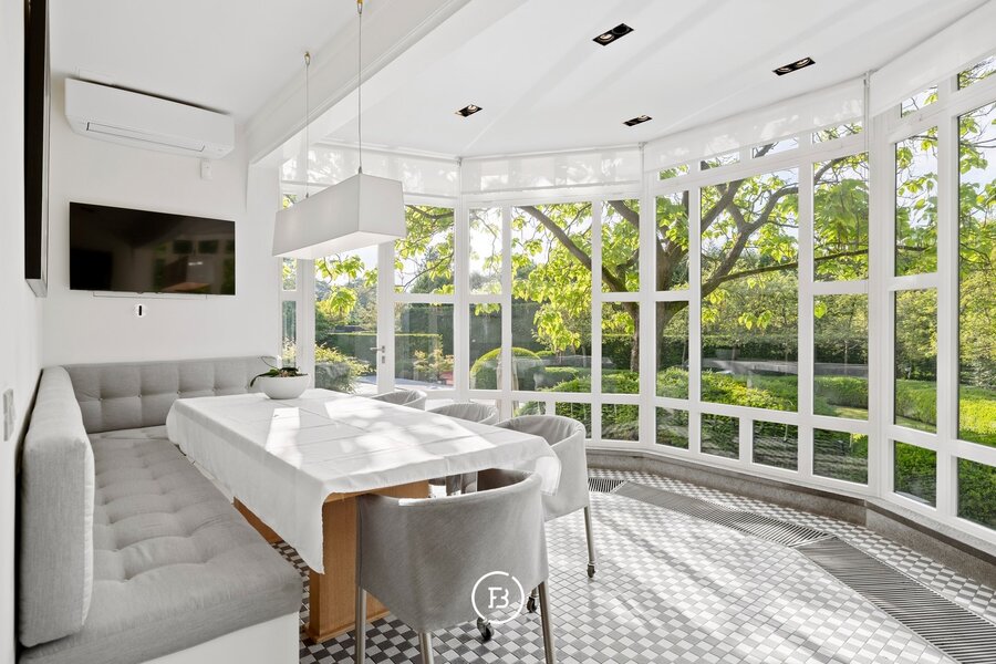 Cette magnifique villa, construite en 1907 sous l'œil attentif de Fernand Bodson, est située à la périphérie d'Uccle et de Rhode-Saint-Genèse. Le résultat est une impressionnante maison contemporaine d'une surface habitable de 630 m², nichée sur un terrain idéalement orienté de 70 ares, conçu par l'architecte paysagiste Wirtz.