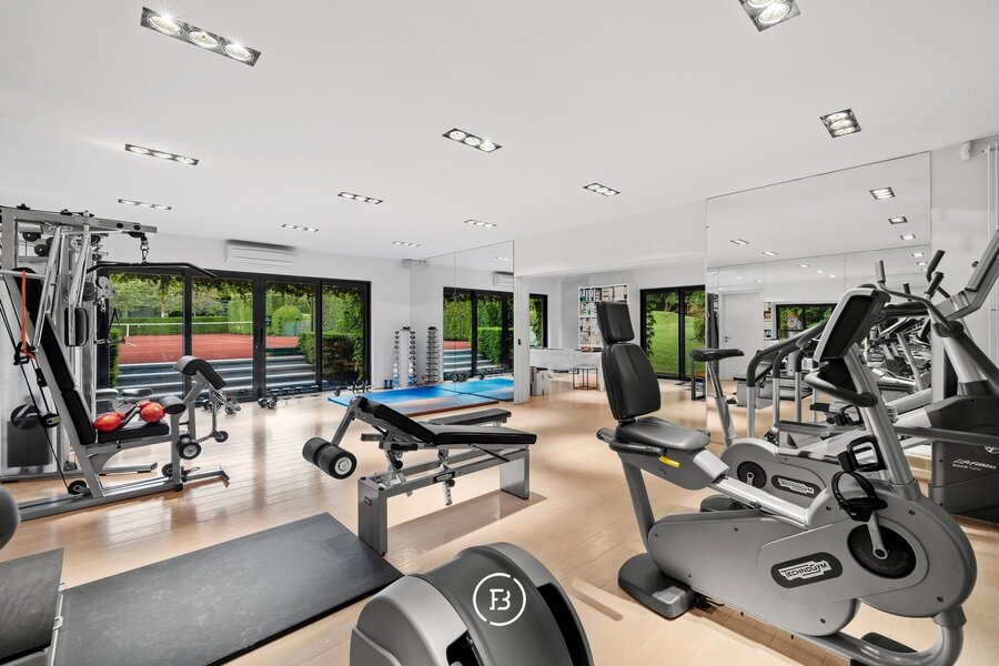 La première dépendance contient un studio et une buanderie. La deuxième dépendance abrite une salle de sport, une salle de bien-être et un bureau. A l'avant se trouve une maison de gardien avec salon, salle à manger, cuisine et deux chambres. En outre, il y a un garage chauffé pouvant accueillir sept voitures.