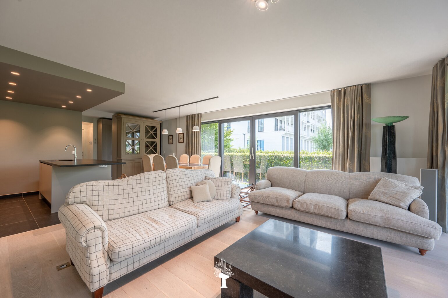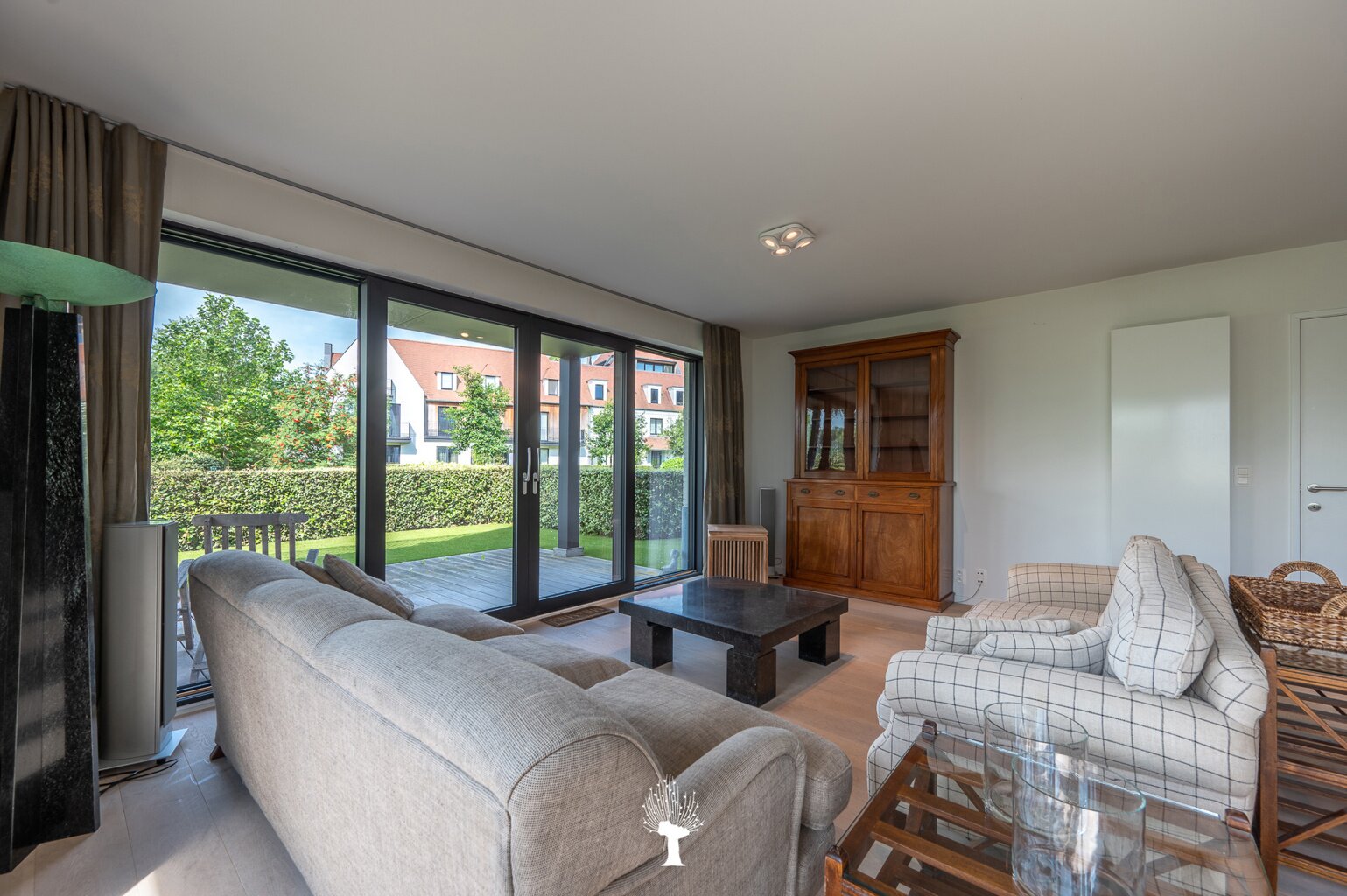Magnifique appartement de jardin avec vue frontale sur le lac de Duinenwater. Composition : entrée avec vestiaire eet wc. Agréable séjour et salle à manger avec grandes portes fenêtres ouvrant sur la terrasse plein sud et le jardin et avec belle vue avec vue sur le lac. Cuisine entièrement équipée avec tous les appasreils électroménagers. Débarras pratique. Chambre principale avec salle de bains attenante et bénéficiant d'une belle vue latérale sur le lac. 2ème chambre à coucher avec salle de douche pratique. Belles finitions. Possibilité d'achat d'un parking et une cave privée au sous-sol de la résidence. Local à vélos en commun. Visites et informations supplémentaires après rendez-vous en un de nos bureaux. A saisir...!