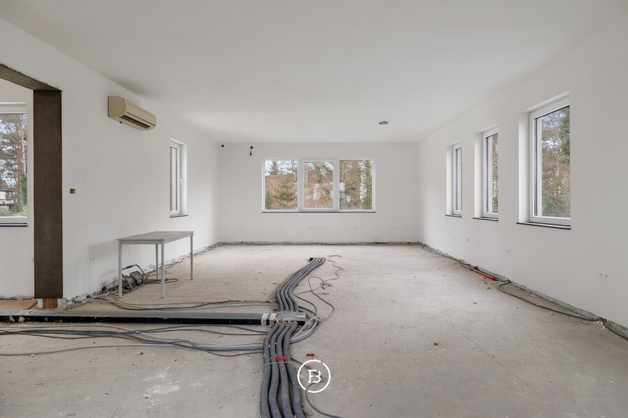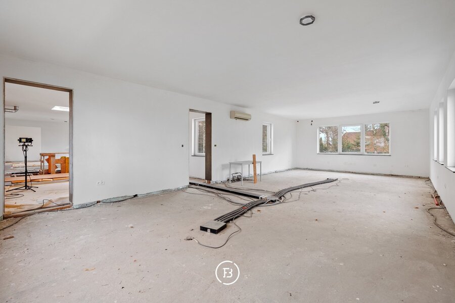 Pénétrez dans un monde de possibilités dans cette propriété exceptionnellement spacieuse, située dans un emplacement unique à Bolderberg, entourée de 27 ares de magnifique nature. Avec une superficie habitable nette généreuse de 630m², cette propriété se présente comme un véritable oasis de créativité et de potentiel. En raison de sa polyvalence, cette propriété peut être transformée en une diversité d'espaces et de fonctions. Que ce soit pour combiner vie et travail, créer une maison kangourou, des bureaux ou des espaces de pratique.