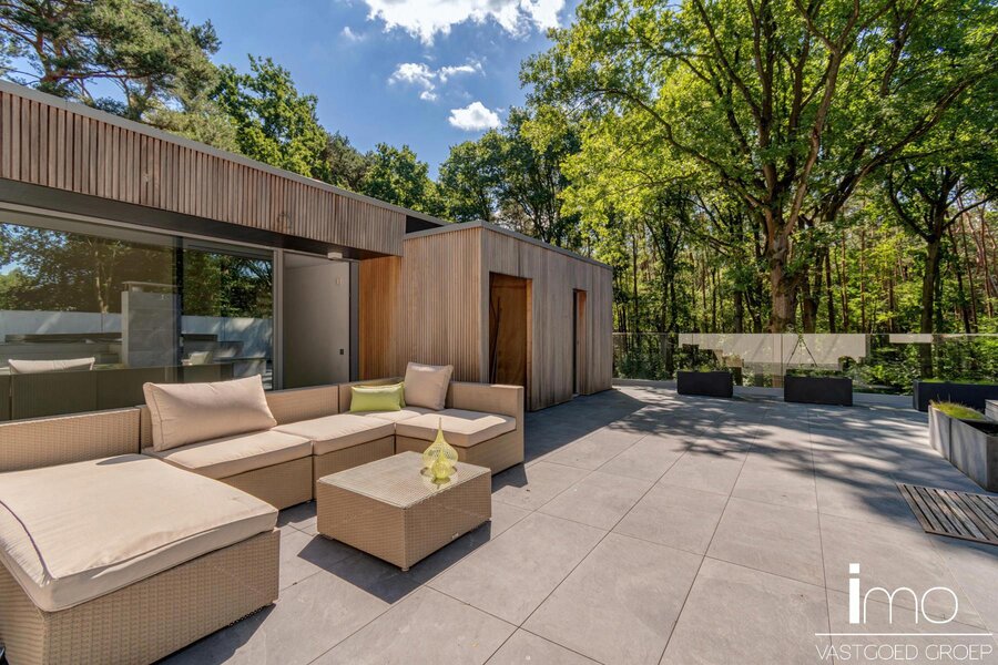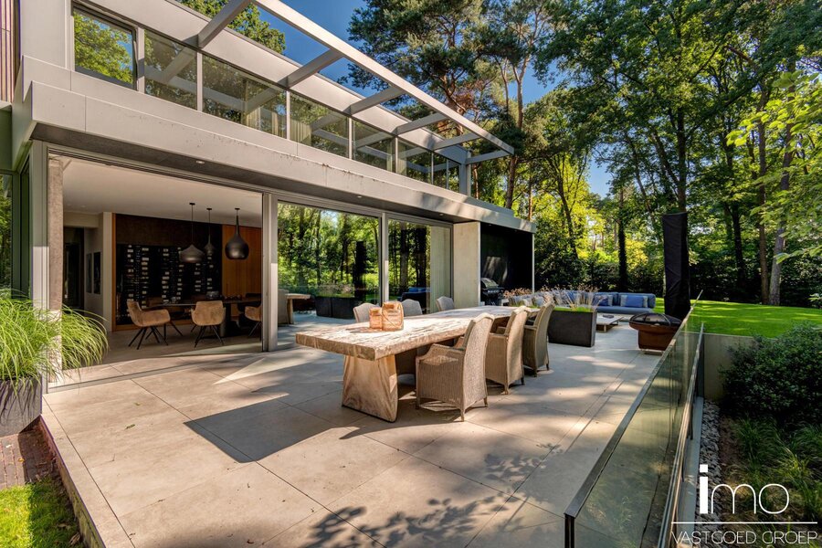 Deze modernistische woning met unieke invulling biedt alle comfort en rust in een oase van groen en bos.