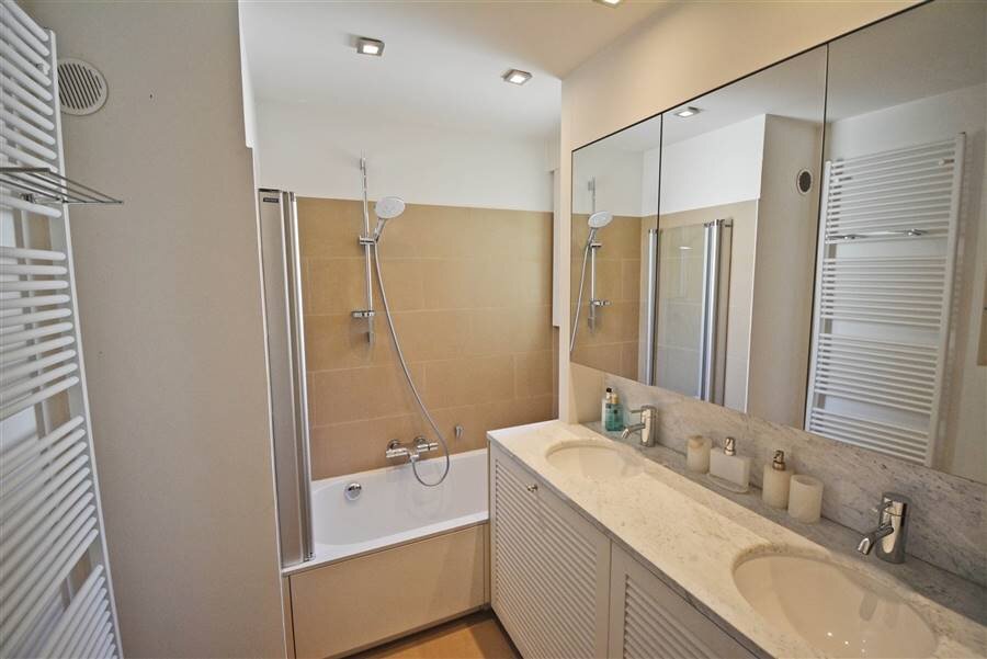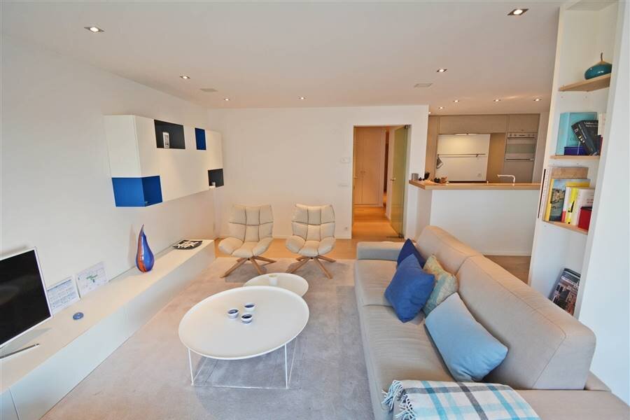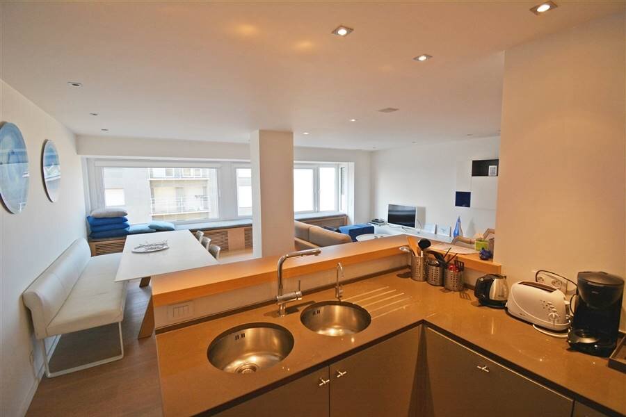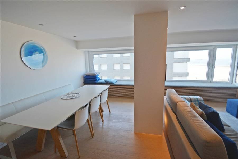 Appartement rénové de grande qualité, entièrement orienté à l'ouest et ensoleillé, avec de belles vues latérales sur la mer. L'appartement comprend un hall d'entrée, un salon spacieux, une cuisine ouverte entièrement équipée, 3 chambres, une salle de bains, une salle de douche, des toilettes séparées, un débarras, une terrasse arrière et un local à vélos commun.