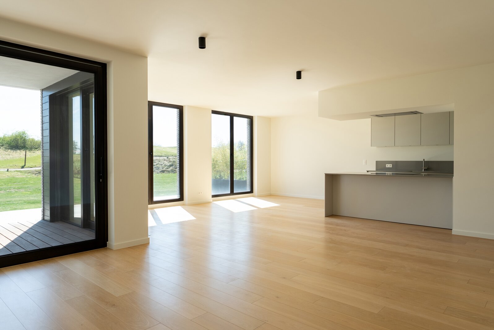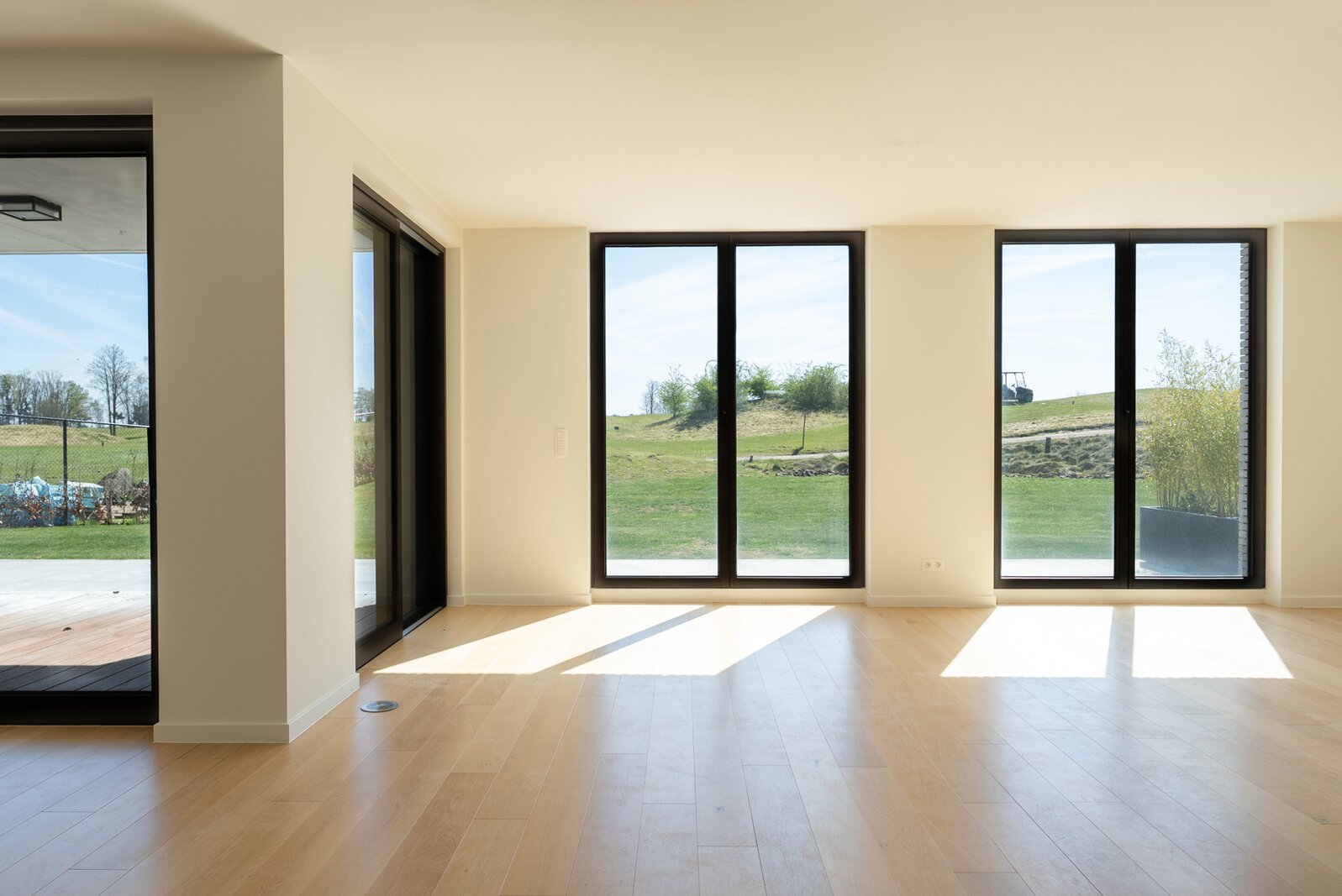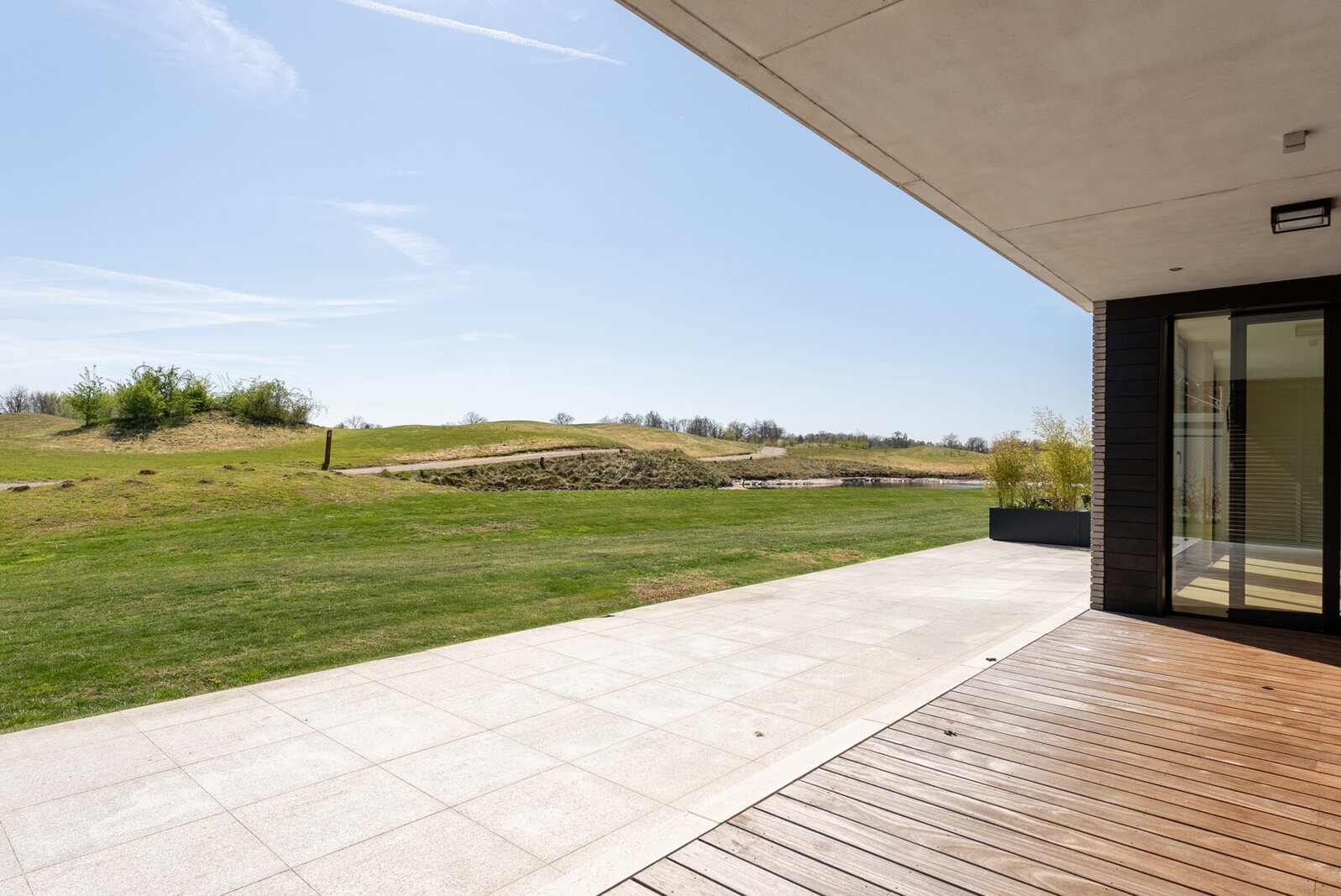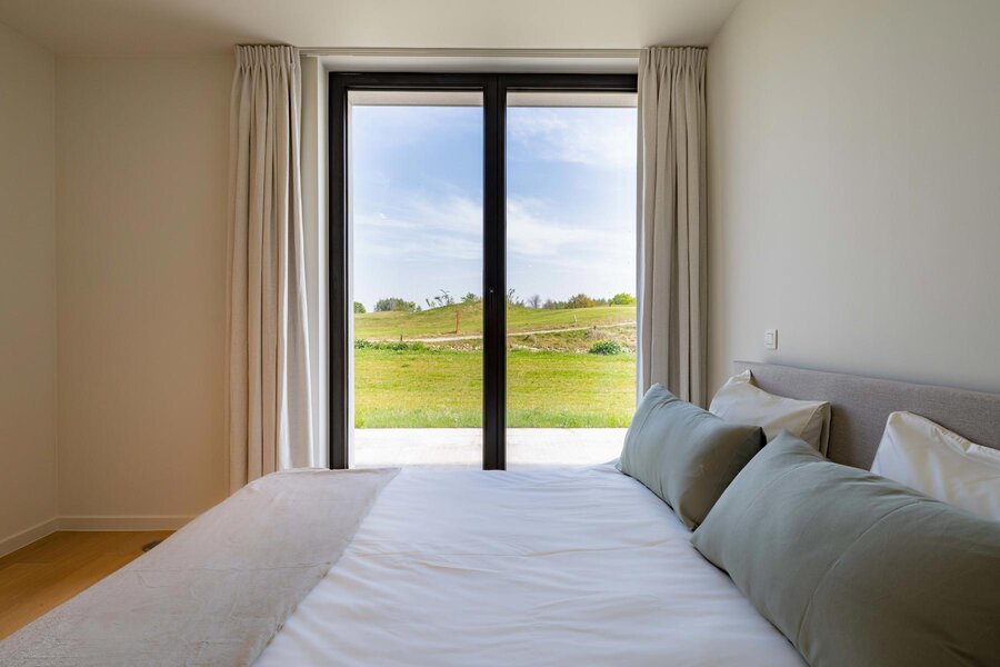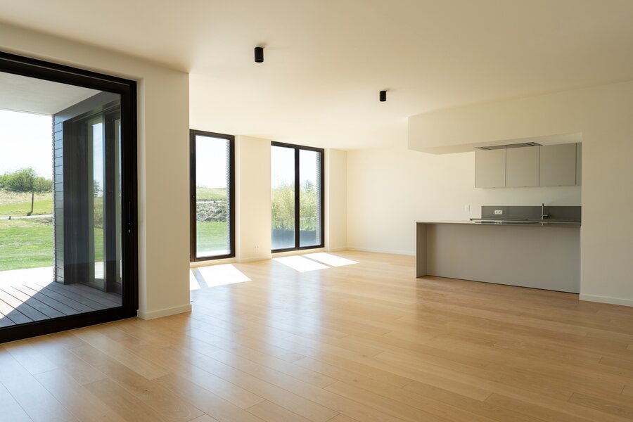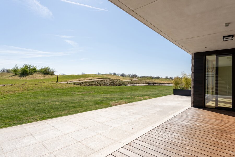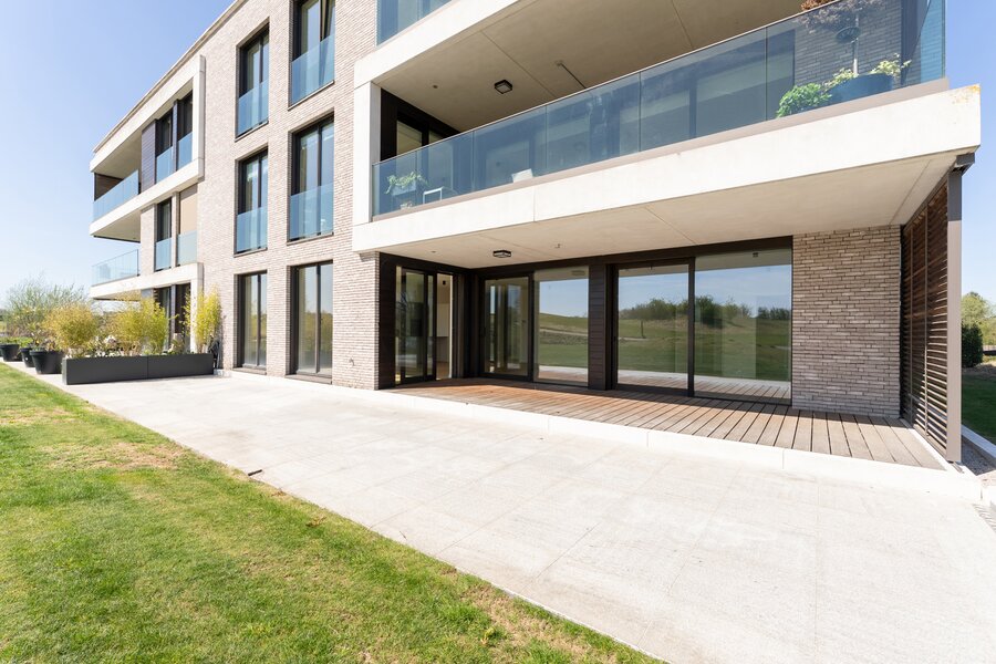 En bordure du golf "The National" à Sterrebeek, au rez-de-chaussée, cet élégant appartement neuf de 195 m² jouit d’une grande terrasse de 21m² orientée sud-est et d'un jardin de 205m². Il se compose d’un beau séjour et d'une splendide salle à manger de +-58m², une cuisine américaine totalisant 14m², une buanderie séparée, 4 chambres (+-18,5 m², 16m², 10m² et 10m²) et de 3 salles d’eau (2 sdd et 1 sdb). Buanderie. WC séparé. Cave comprise dans le prix de vente. Parkings obligatoires en supplément. Excellentes performances énergétiques et acoustiques. Vous serez émerveillés par la beauté du lieu et de cet appartement. Demandez une visite dès aujourd'hui. Vente sous droits d'enregistrement sur le terrain et sous régime TVA sur la construction