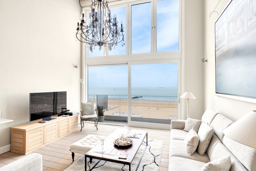 Ce spacieux appartement en duplex de 201 m² allie style, confort et emplacement imbattable sur la Zeedijk dans le Zoute.