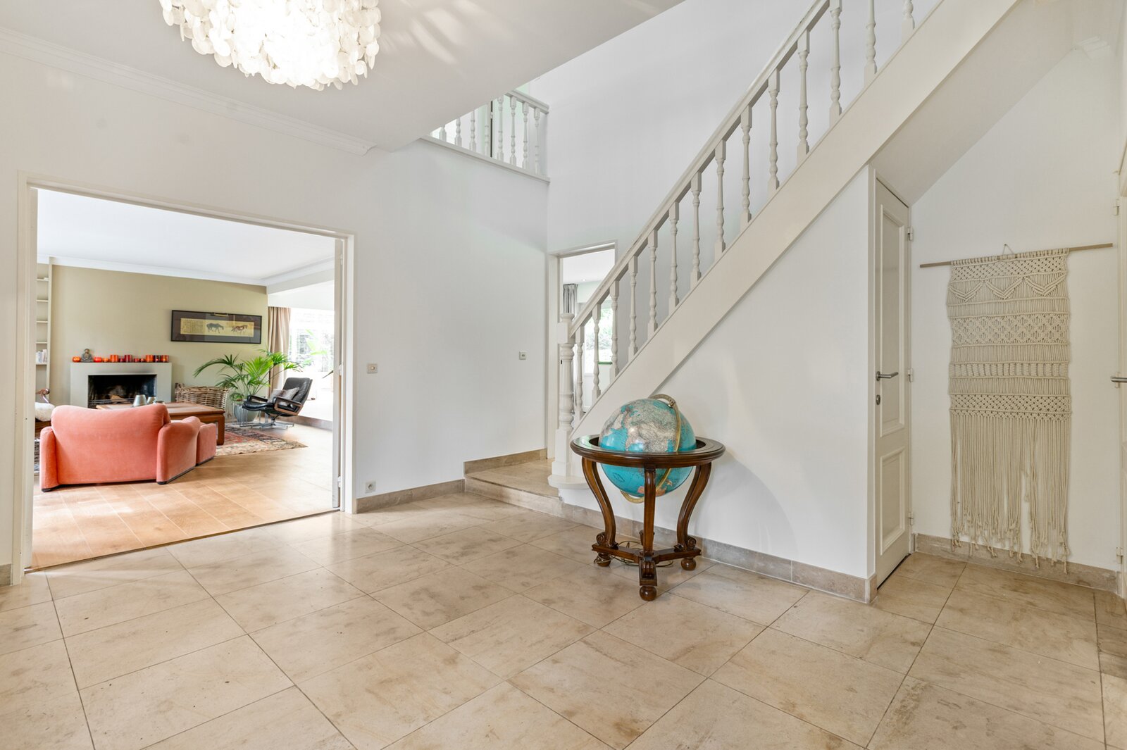 Via de ruime inkomhal met ingemaakte vestiairekast en gastentoilet met aparte handenwasser betreed je de leefruimte. Deze bestaat uit een salon met open haard, een eetkamer en een lichtrijke orangerie, eveneens met open haard.