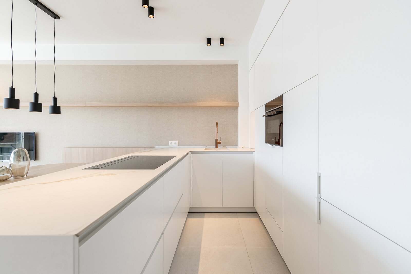 Le séjour spacieux baigne dans la lumière et constitue le cœur de l’appartement. La cuisine ouverte moderne, entièrement équipée avec des appareils de qualité, allie esthétique et fonctionnalité. Le coin salon accueillant et la salle à manger s’harmonisent parfaitement.