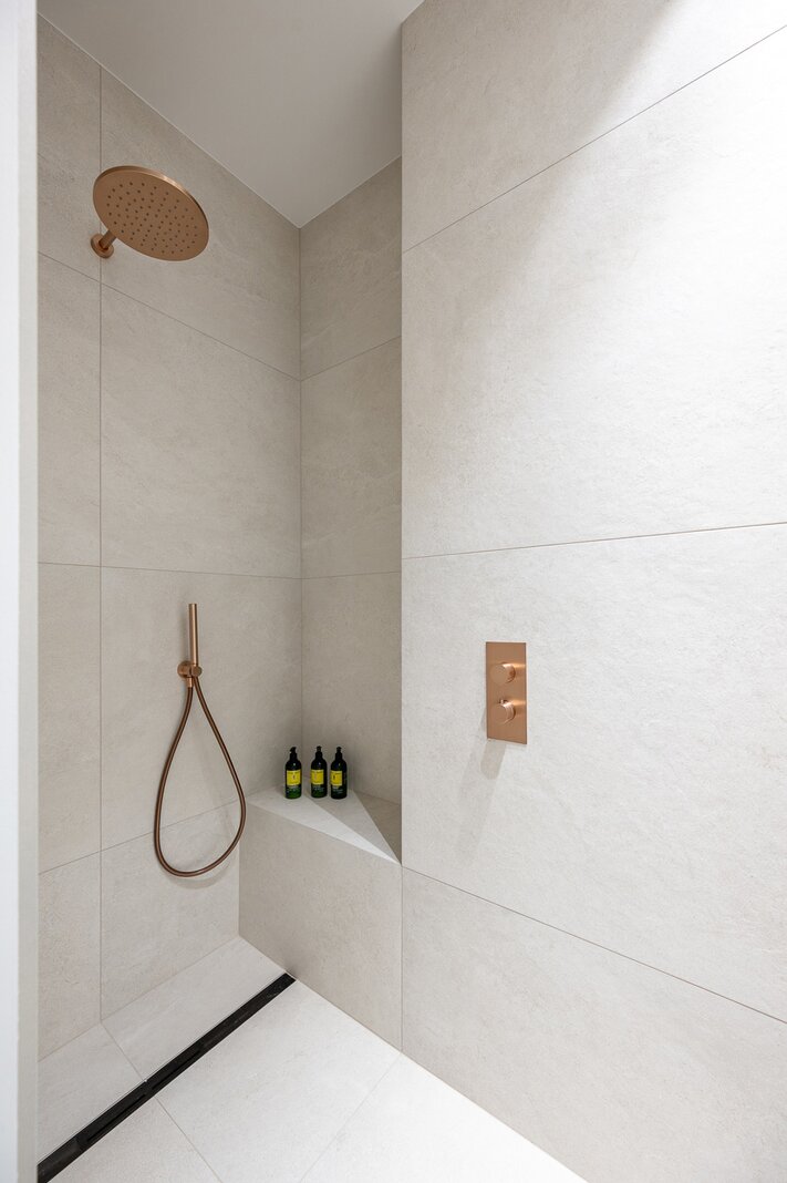 L’appartement comprend 3 chambres à coucher complètes, toutes dotées de rangements intégrés et d’un design soigné. La suite principale bénéficie d’une salle de bain privative, tandis que les deux autres chambres partagent une salle de douche élégante.