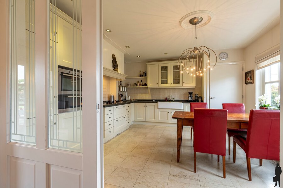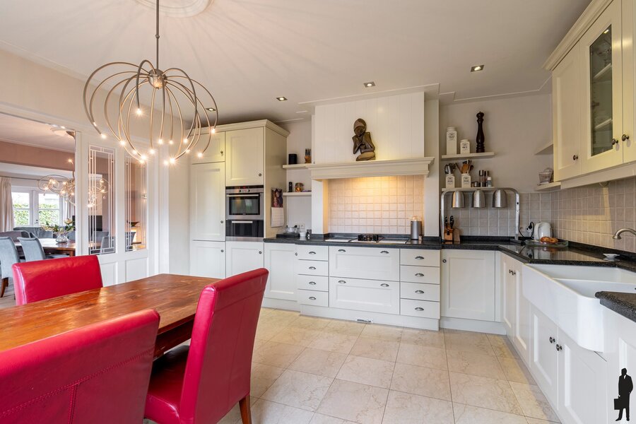 De keuken grenst aan de woonkamer en is voorzien van een landelijke keukeninrichting met alle nodige inbouwapparatuur.