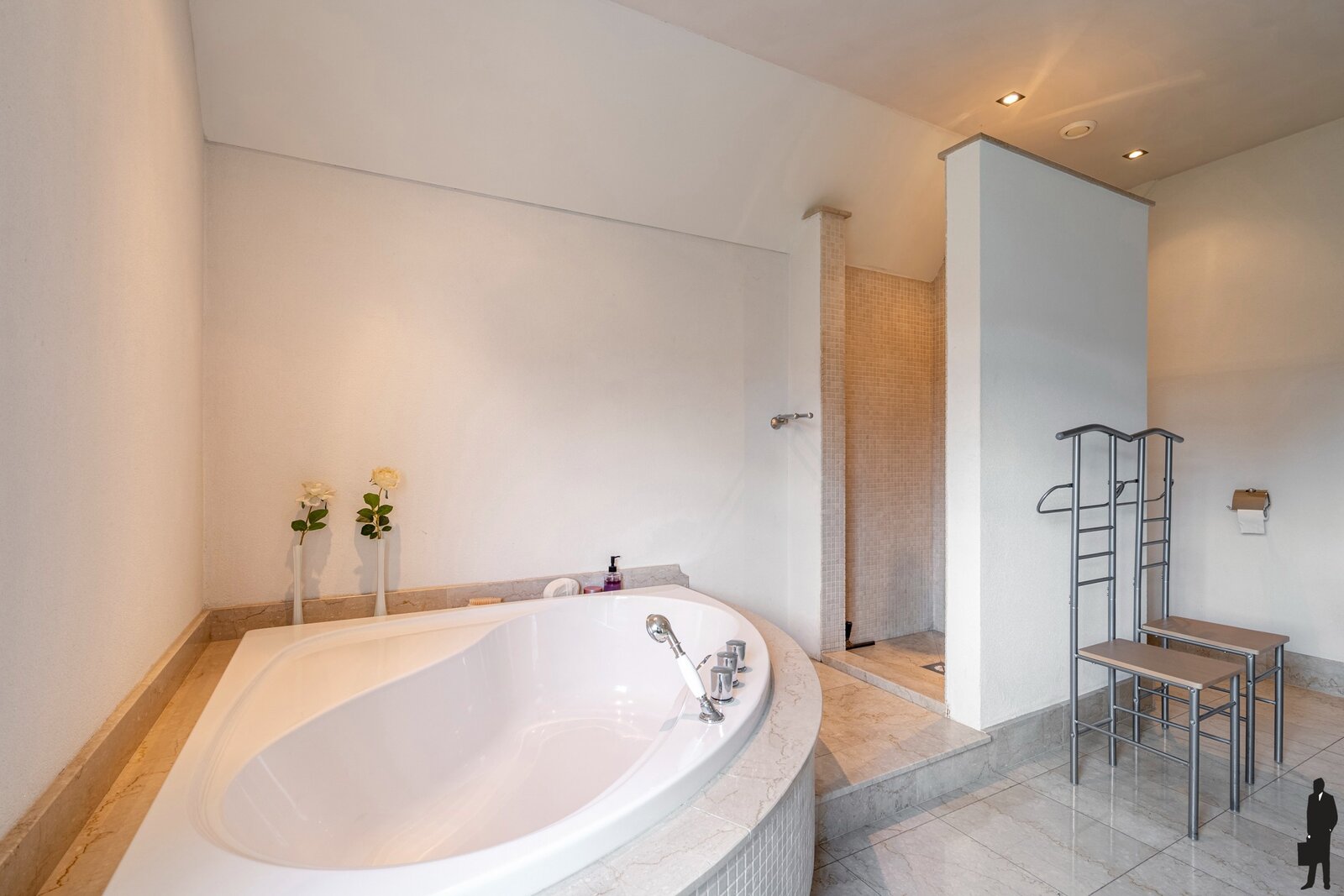 Tevens is er een aparte gastenbadkamer met douche en een dressing.