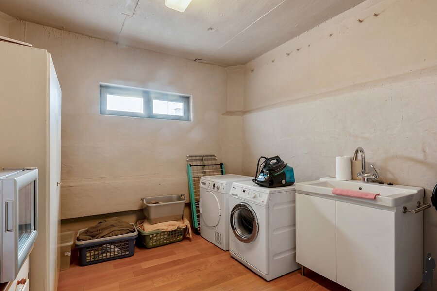 Een trap leidt naar de andere verdieping met een tweede en derde slaapkamer. De 3e slaapkamer is momenteel ingericht als bureau. Daarnaast vind je er een apart toilet en een ruime wasplaats.