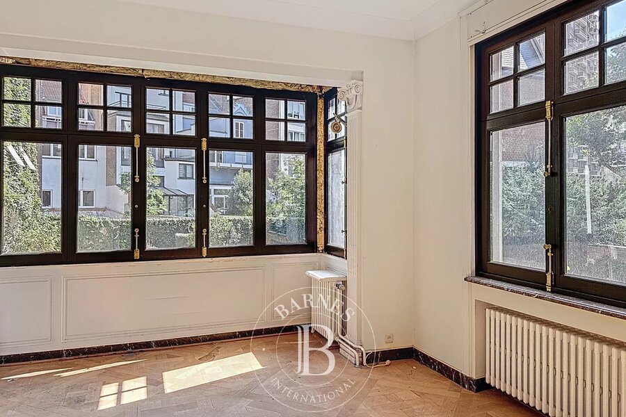 Idéalement située dans le très exclusif Square du Val de la Cambre, à deux pas des Étangs d’Ixelles, Barnes vous propose cette maison de maître de ± 390 m² habitables, bénéficiant d’un cadre verdoyant et sécurisé. Derrière une façade élégante se déploie une demeure de caractère, baignée de lumière, offrant de vastes volumes et un potentiel unique, sublimé par un projet de rénovation haut de gamme conçu par l’architecte Olivier Lempereur. Composition : Rez-de-chaussée : hall d’entrée majestueux avec vestiaire et toilettes invités, bureau ou espace polyvalent idéal pour profession libérale, buanderie et accès aux caves. 1er étage : superbe cage d’escalier menant à deux salons lumineux avec accès au jardin, salle à manger conviviale et cuisine. 2ème étage : somptueuse suite parentale avec dressing et salle de bains, ainsi qu’une chambre supplémentaire avec sa salle de bains. 3ème étage : deux chambres confortables et salle de douches. Sous-sols : nombreuses caves, espaces de rangement et chaufferie. Un ascenseur dessert tous les étages, ajoutant confort et élégance à la distribution. À l’extérieur, un jardin intimiste complète l’ensemble. La maison dispose également d’un garage pour une voiture (avec possibilité d’acquérir un second emplacement dans le square pour 150 000 €). Atouts supplémentaires : Nouvelle toiture en ardoises avec isolation Châssis neufs, réalisés à l’identique Prestigieuse adresse, dans un clos verdoyant et sécurisé Rare opportunité de personnaliser un projet d’exception . Une adresse emblématique de Bruxelles, alliant raffinement, quiétude et proximité immédiate des institutions européennes, commerces, restaurants et écoles de renom. PEB G