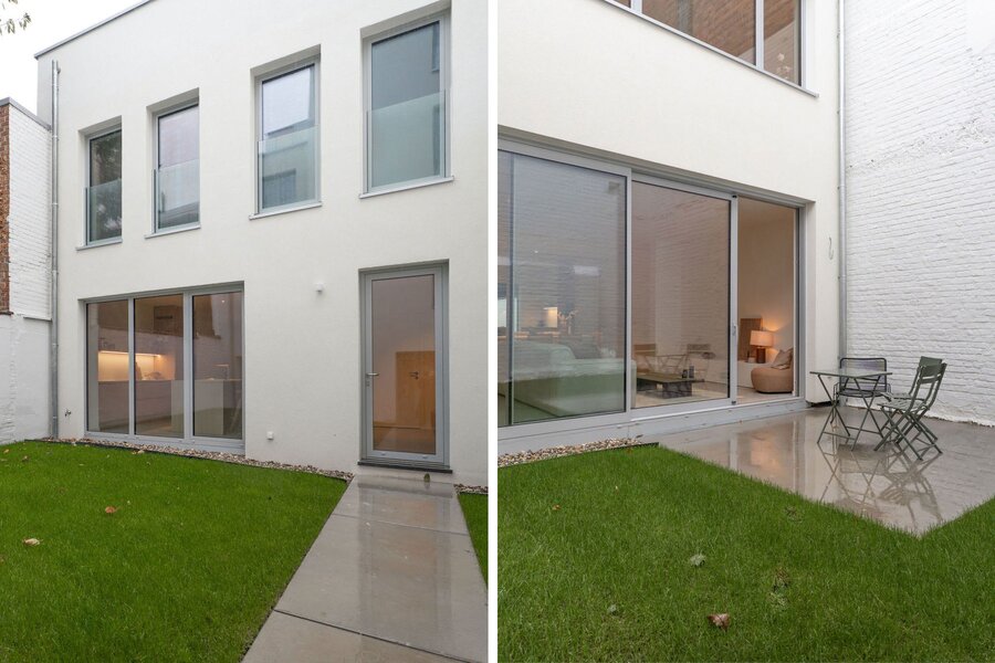 Le projet « WOLUVERT » se compose d’un petit bâtiment divisé en 4 unités distinctes. Victoire Junot vous propose ici ce très agréable appartement LOFT en duplex avec très belle hauteur sous plafond, en arrière-maison, et qui offre une superficie de 185 m². Il profite d’une situation exceptionnelle, en intérieur d’îlot, au calme avec un jardin arrière assurant l’intimité requise et un jardin avant. Le hall d’entrée avec WC séparé, s’ouvre sur la grande cuisine super équipée et la salle à manger. Le séjour prolonge ce bel espace qui se complète d’une terrasse et du jardin arrière. L’étage accueille les 3 chambres, dont la chambre principale avec une salle de bain complète, ainsi qu’une seconde salle de bain et un WC séparé.