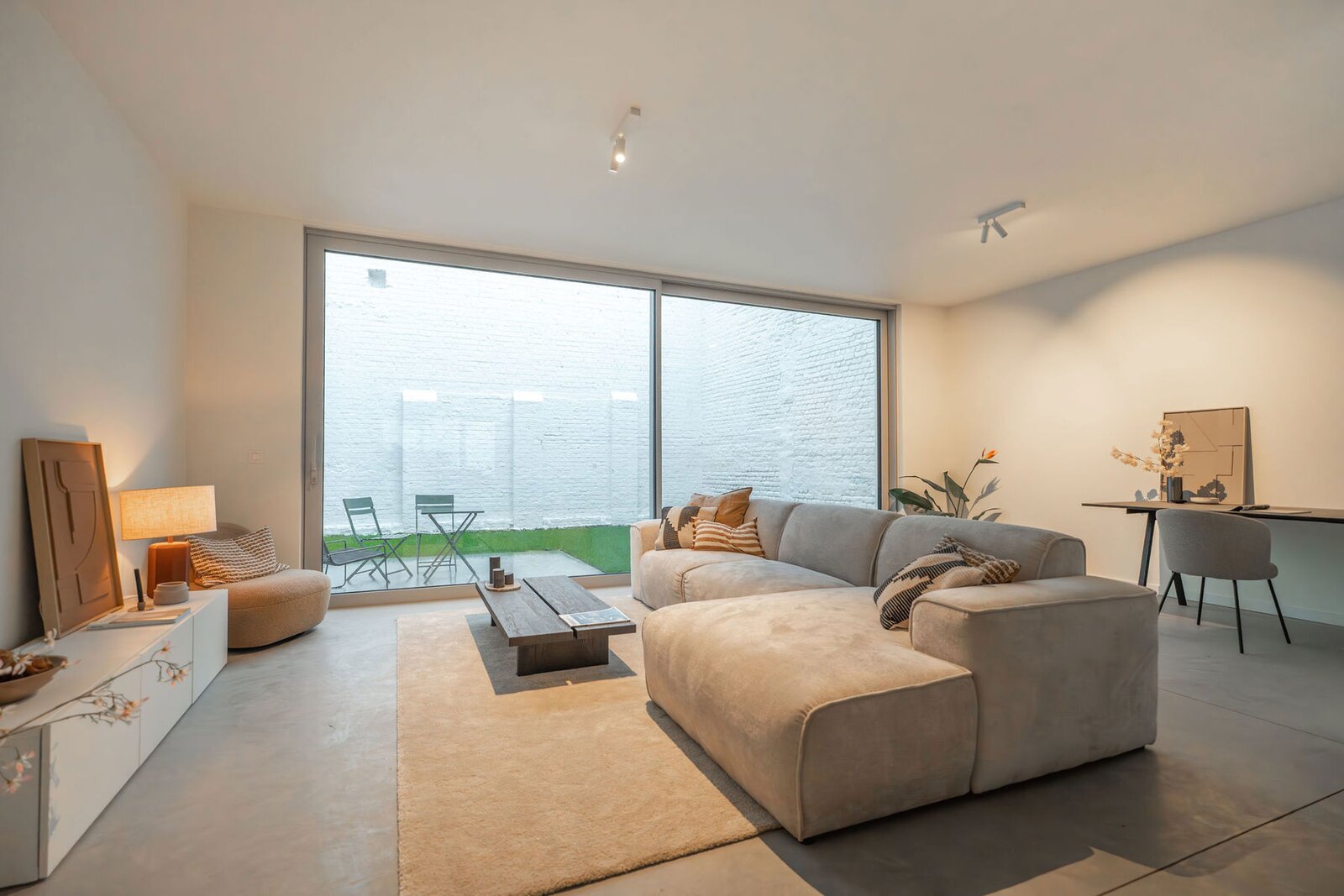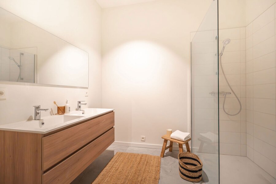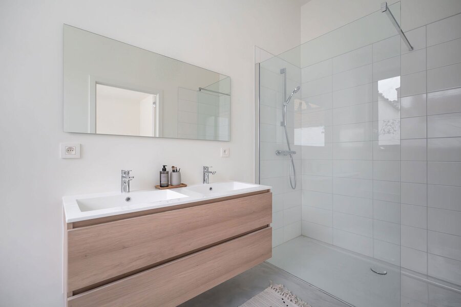 Le bâtiment est joliment conçu en briques blanches, qui donnent une belle luminosité à l’ensemble, et jouit du label « durable » grâce à une compensation carbone, une isolation optimale, avec une priorité au bois, un usage des eaux de pluies, et des panneaux solaires pour alimenter l'électricité des communs, PEB A ou B.