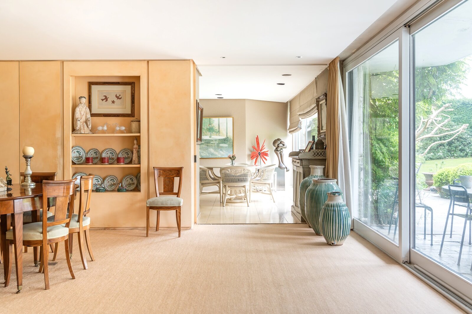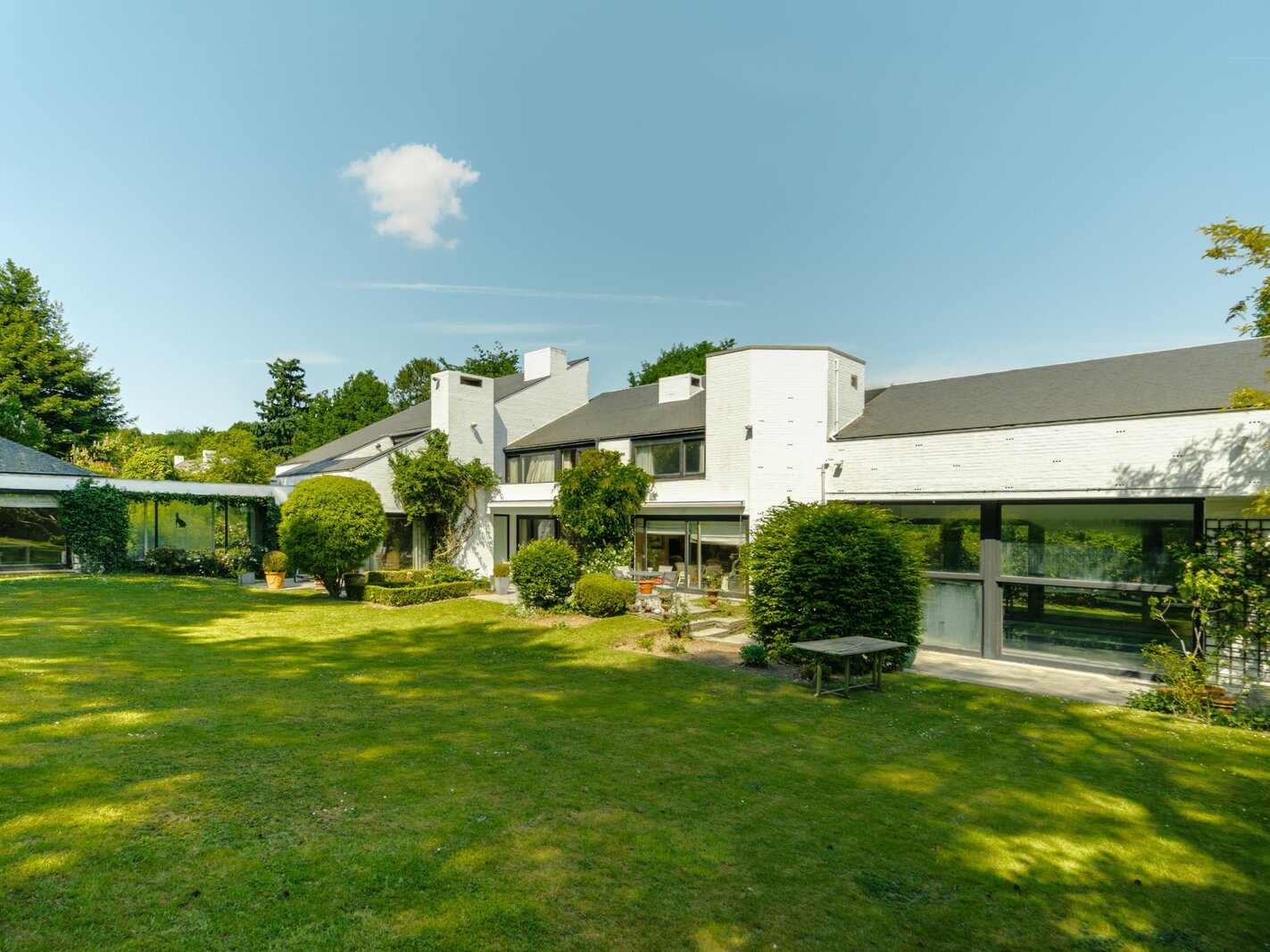 Implantée sur un terrain de plus de 41 ares orienté plein sud, soigneusement aménagé par le paysagiste Jacques Wirtz, la propriété présente une élégante façade de 13 mètres et développe une surface bâtie de 953,54 m², répartie sur plusieurs niveaux alliant confort, esthétisme et fonctionnalité.