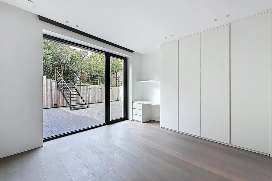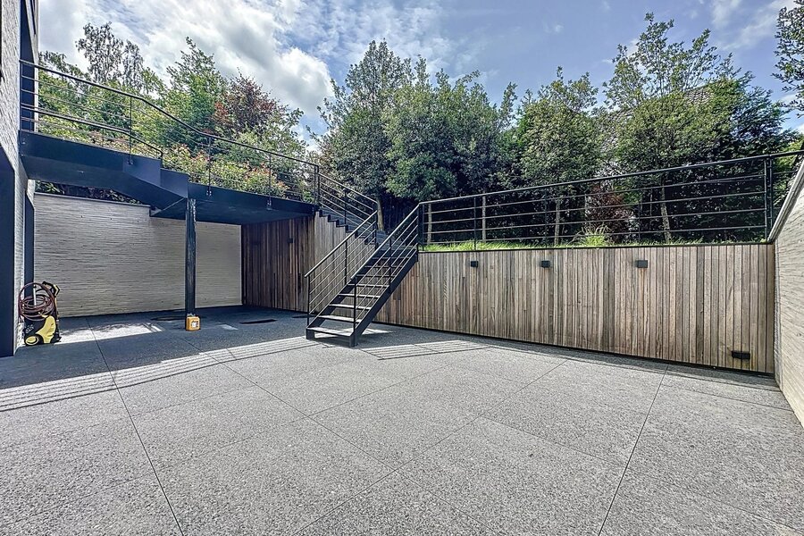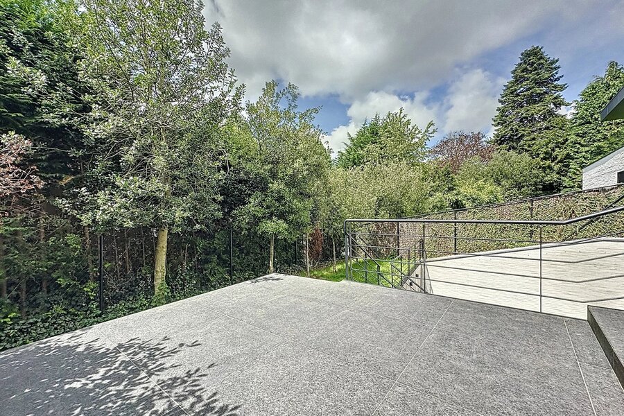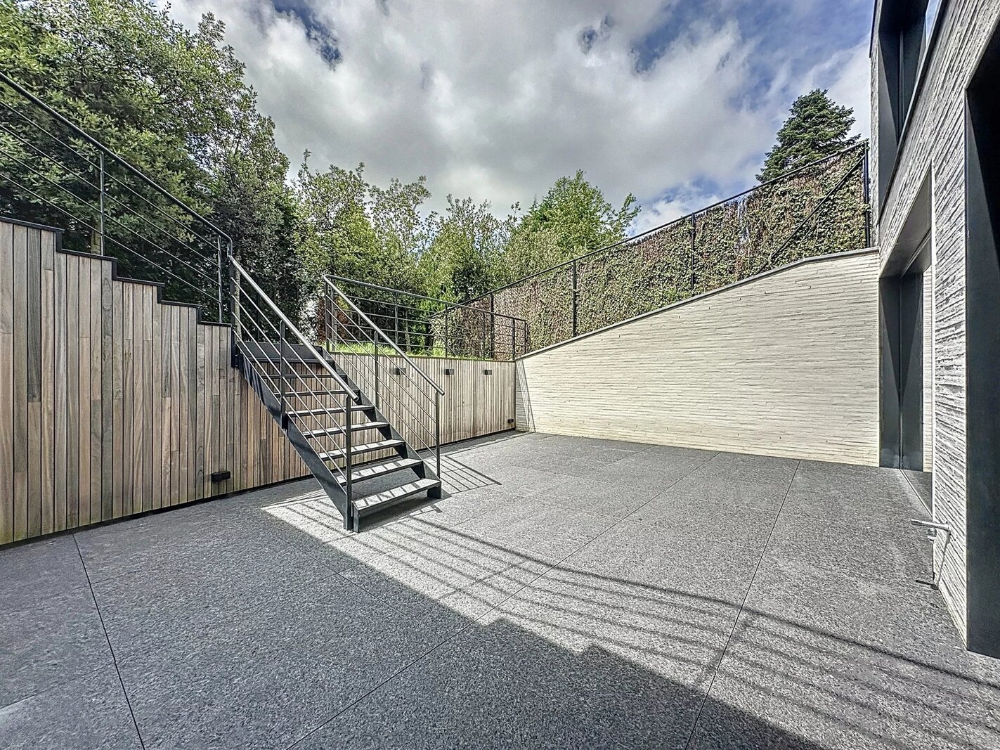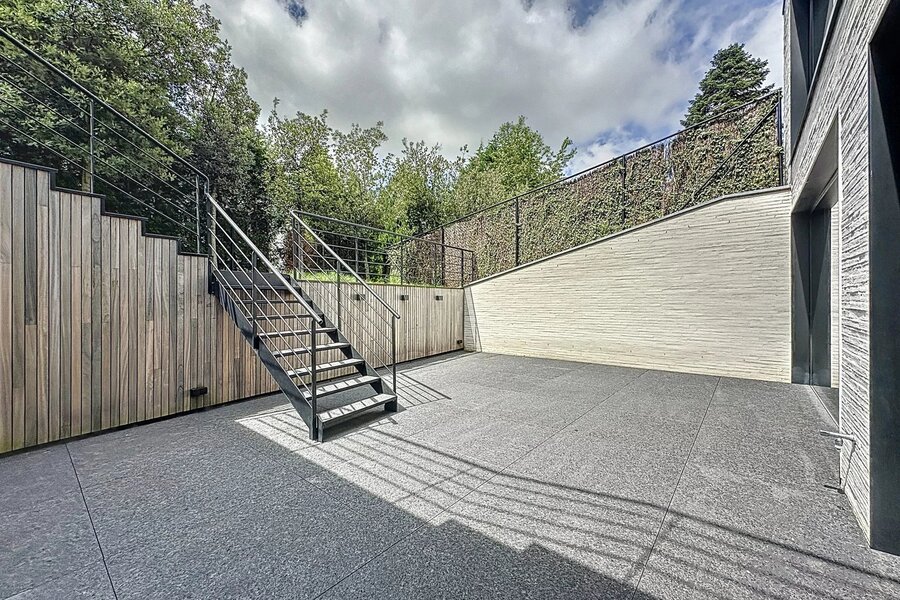 Idéalement située entre le Prince d'Orange et la petite Espinette, à quelques pas de la Forêt de Soigne, magnifique appartement duplex rez-de-chaussée d'une superficie totale de ± 244 m² au sein d'une construction récente. Il se compose d'un hall d'entrée avec un vestiaire et un water-closet, d'un vaste et lumineux séjour (± 35,60 m²) avec un espace TV, d'une cuisine ouverte super équipée (± 25 m²), d'une jolie salle à manger (± 14,70 m²) de 3 belles et grandes chambres (± 27,40 m², ± 17,50 m² et ± 15,70 m²), d'une salle d'eau avec baignoire et douche à l'Italienne et de 2 salles de douches. Superbe terrasse (± 30 m²) et un grand jardin (± 2 ares) orientés Sud. Grandes caves et garage 2 voitures en sous-sol avec un accès privatif à l'appartement. Matériaux de qualité, domotique, système double flux, parquet en chêne massif, marbres de qualité, volets électriques et finitions soignées. Charges : 300 € /mois (Provision pour l'entretien de la chaudière, ventilation, domotique, appareils domestiques). PEB B. A découvrir au plus vite !