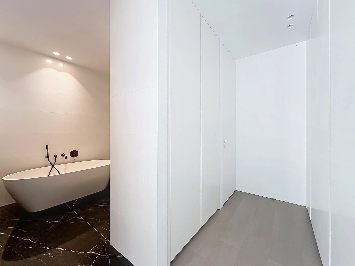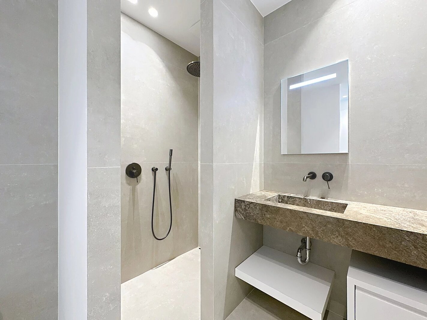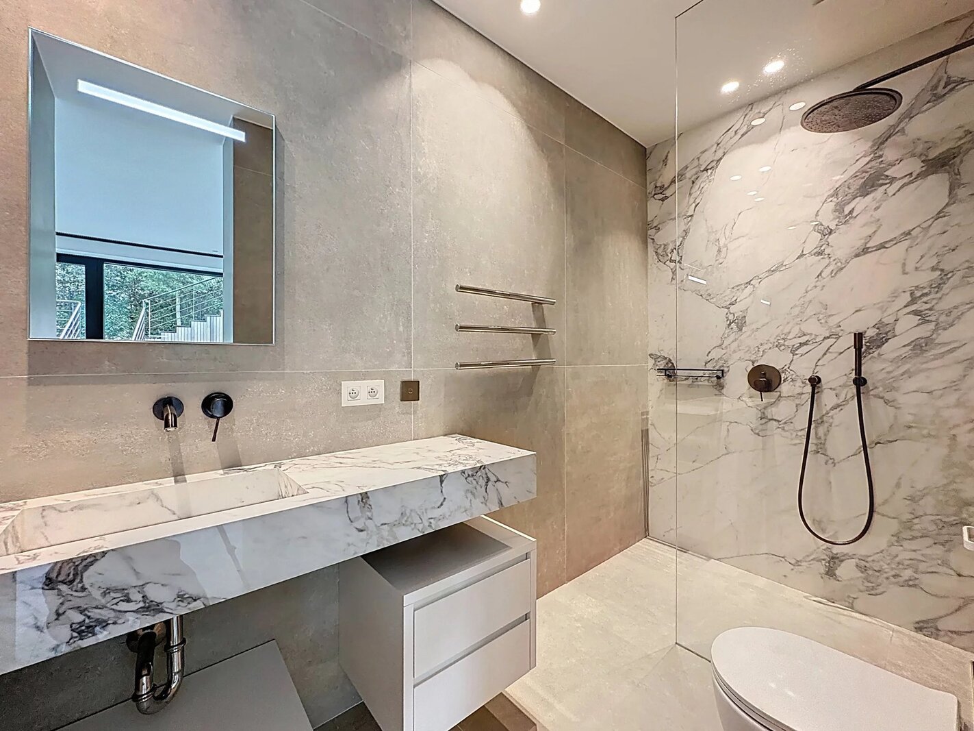 Idéalement située entre le Prince d'Orange et la petite Espinette, à quelques pas de la Forêt de Soigne, magnifique appartement duplex rez-de-chaussée d'une superficie totale de ± 244 m² au sein d'une construction récente. Il se compose d'un hall d'entrée avec un vestiaire et un water-closet, d'un vaste et lumineux séjour (± 35,60 m²) avec un espace TV, d'une cuisine ouverte super équipée (± 25 m²), d'une jolie salle à manger (± 14,70 m²) de 3 belles et grandes chambres (± 27,40 m², ± 17,50 m² et ± 15,70 m²), d'une salle d'eau avec baignoire et douche à l'Italienne et de 2 salles de douches. Superbe terrasse (± 30 m²) et un grand jardin (± 2 ares) orientés Sud. Grandes caves et garage 2 voitures en sous-sol avec un accès privatif à l'appartement. Matériaux de qualité, domotique, système double flux, parquet en chêne massif, marbres de qualité, volets électriques et finitions soignées. Charges : 300 € /mois (Provision pour l'entretien de la chaudière, ventilation, domotique, appareils domestiques). PEB B. A découvrir au plus vite !