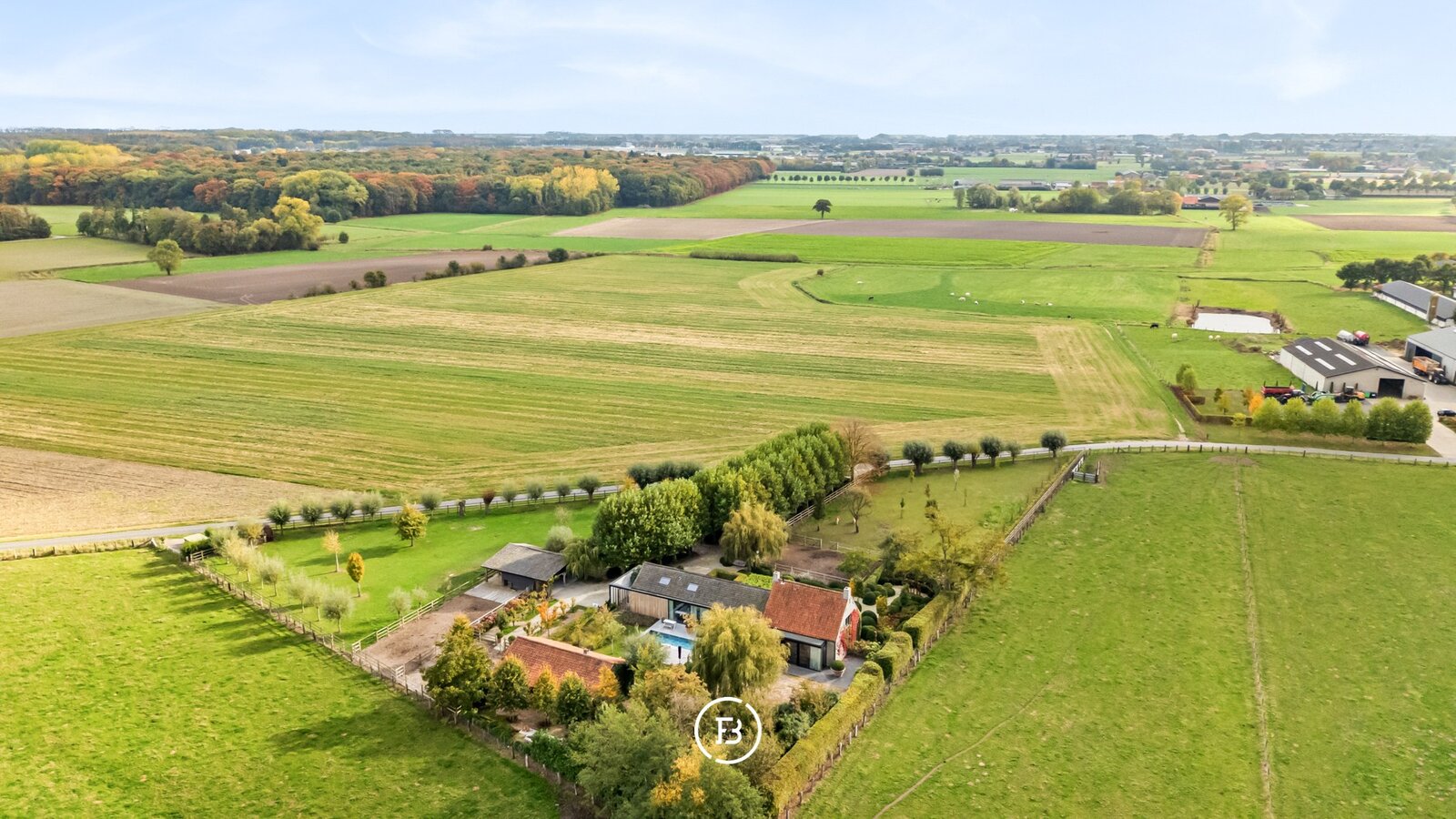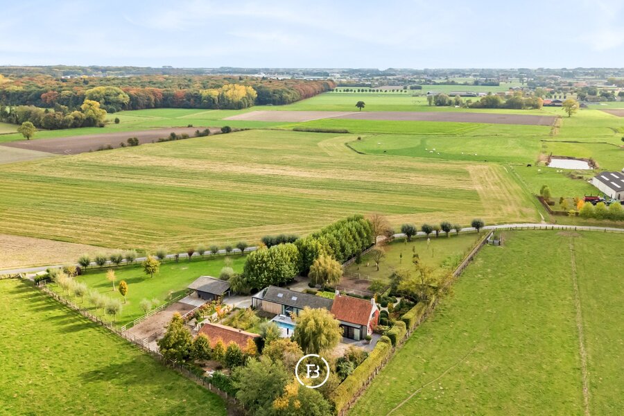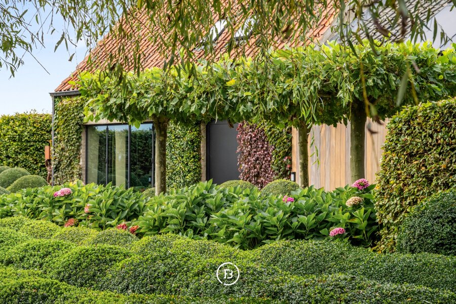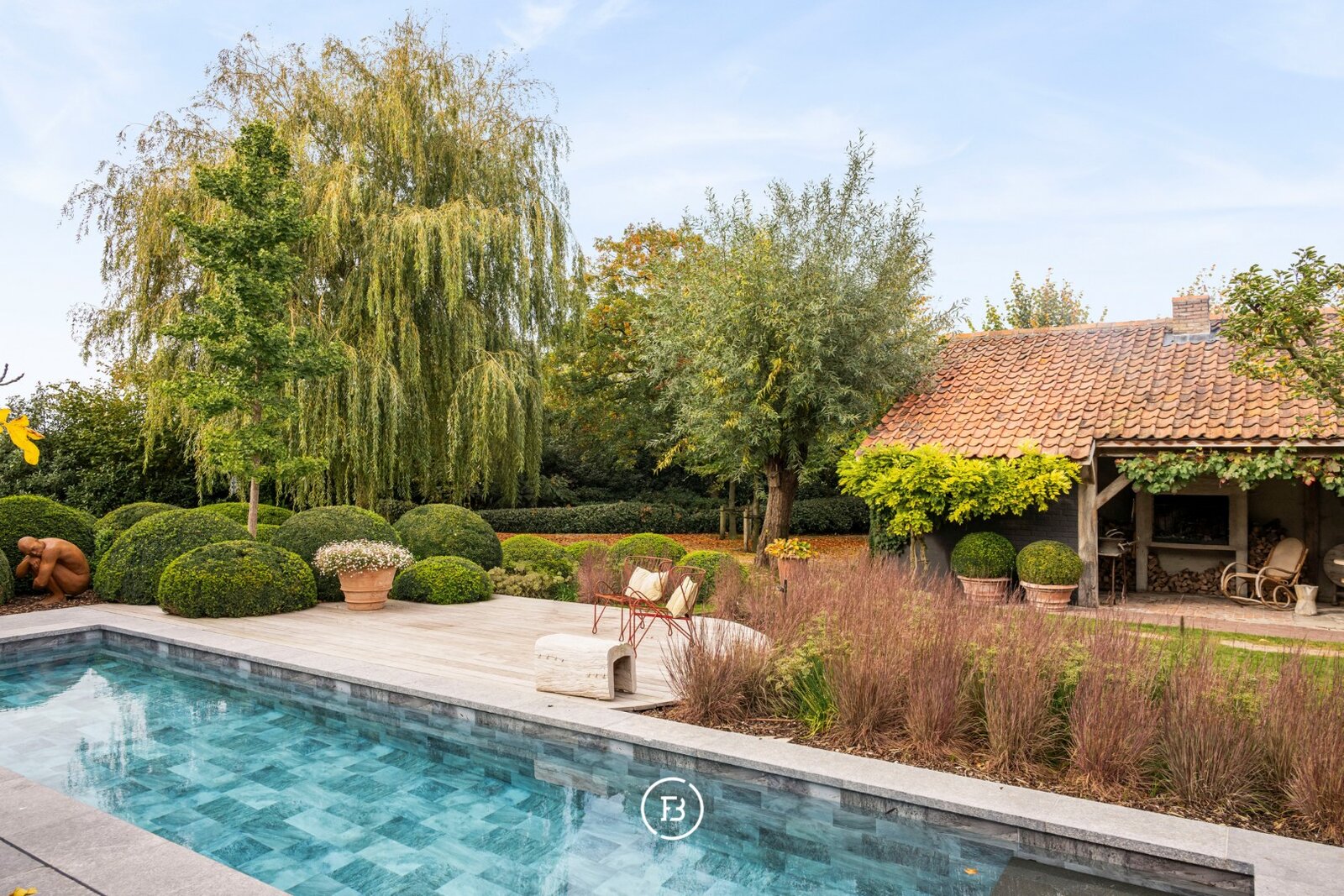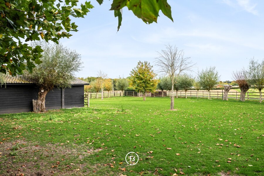 L’extérieur invite à la détente : la superbe piscine avec grande terrasse attenante au séjour et la terrasse couverte de la dépendance, parfaite comme poolhouse, transforment chaque soirée d’été en moment magique. Le jardin paysager, orné de bordures de buis et d’arbres matures, dispose d’un système d’arrosage automatique garantissant une oasis verte permanente et une ambiance de vacances instantanée. Les prairies clôturées avec abris conviennent idéalement aux amateurs d’animaux. Un double carport complète l’ensemble.