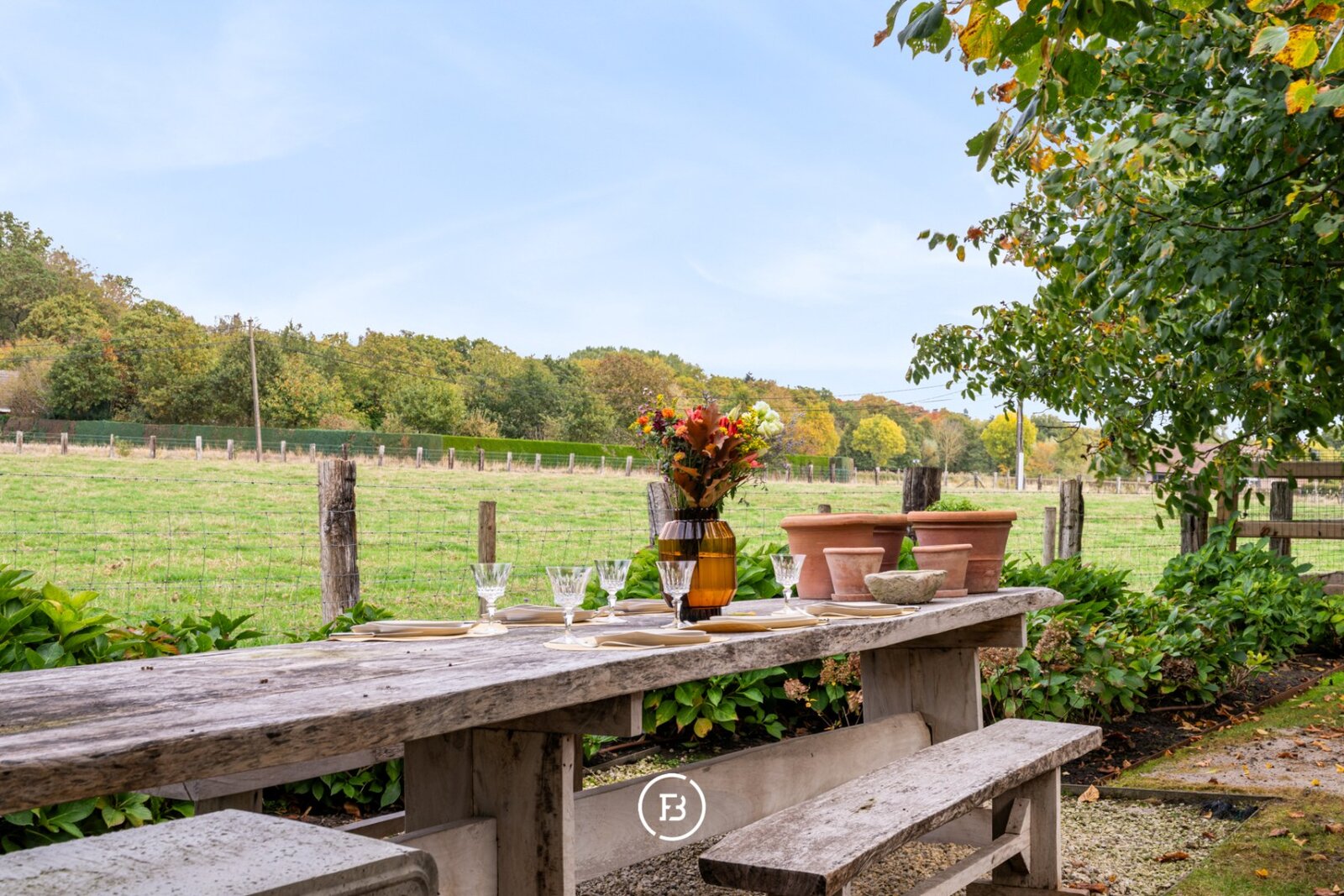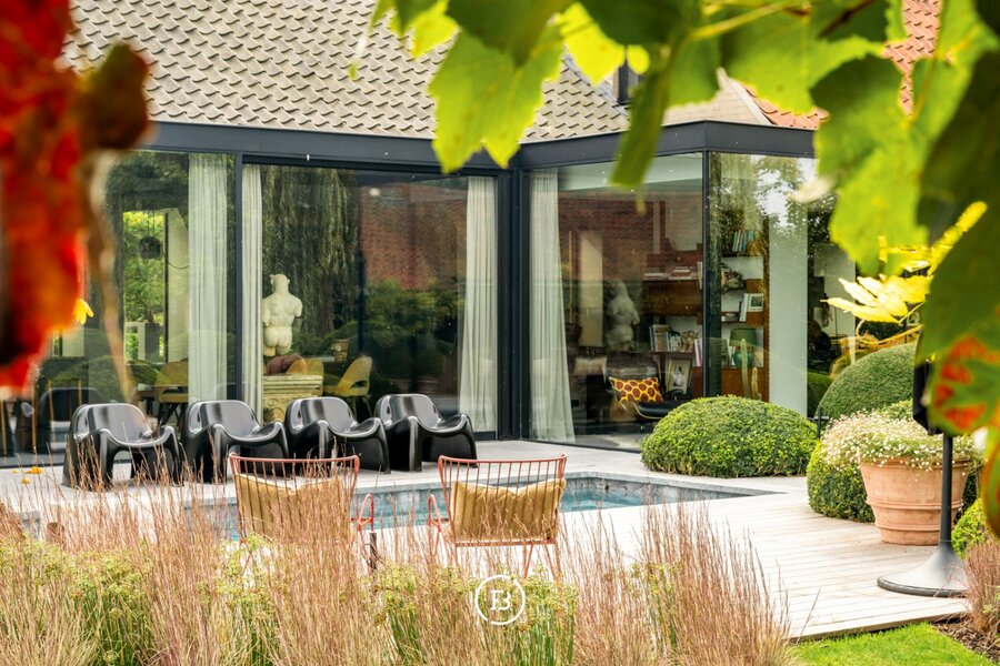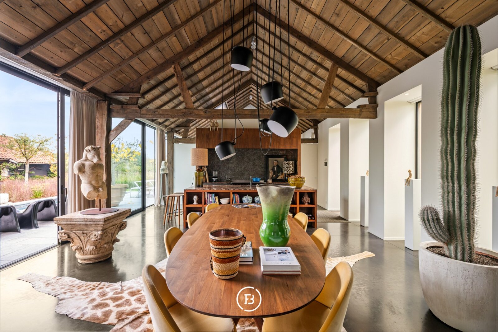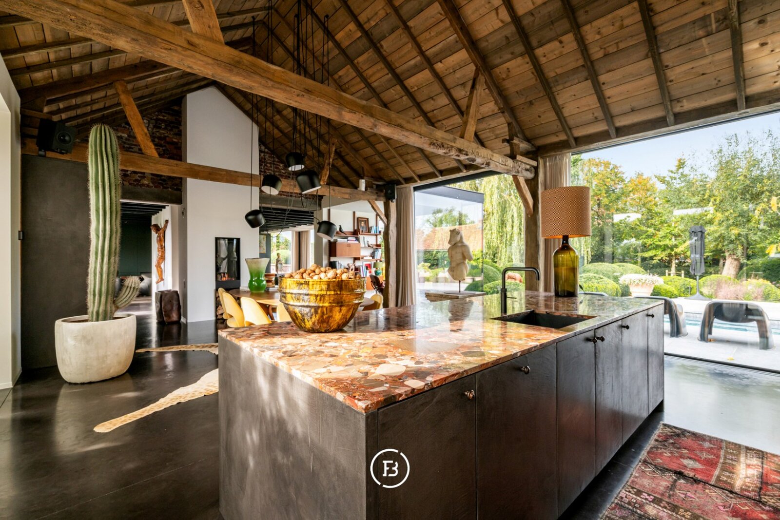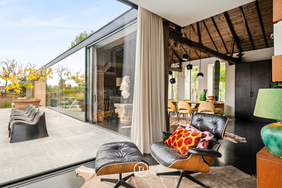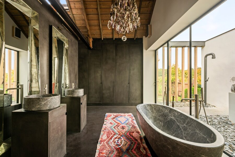 Aux abords de la forêt d’Hertsberge, dissimulée derrière une majestueuse allée, se trouve cette propriété d’exception sur un magnifique terrain de 7.031 m². Vous y profitez d’un calme absolu, d’une intimité totale et de vues imprenables sur la nature environnante. Cette ferme entièrement reconstruite et économe en énergie combine un style loft, des finitions luxueuses et une décoration raffinée avec une atmosphère chaleureuse et conviviale.