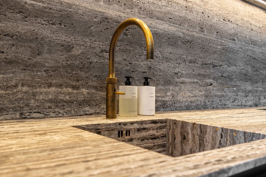 De volledige eerste verdieping is ingericht als masterverdieping. Deze omvat een royale slaapkamer met dressing en een luxueus afgewerkte badkamer met inloopdouche, ligbad en een op maat gemaakte wastafel.