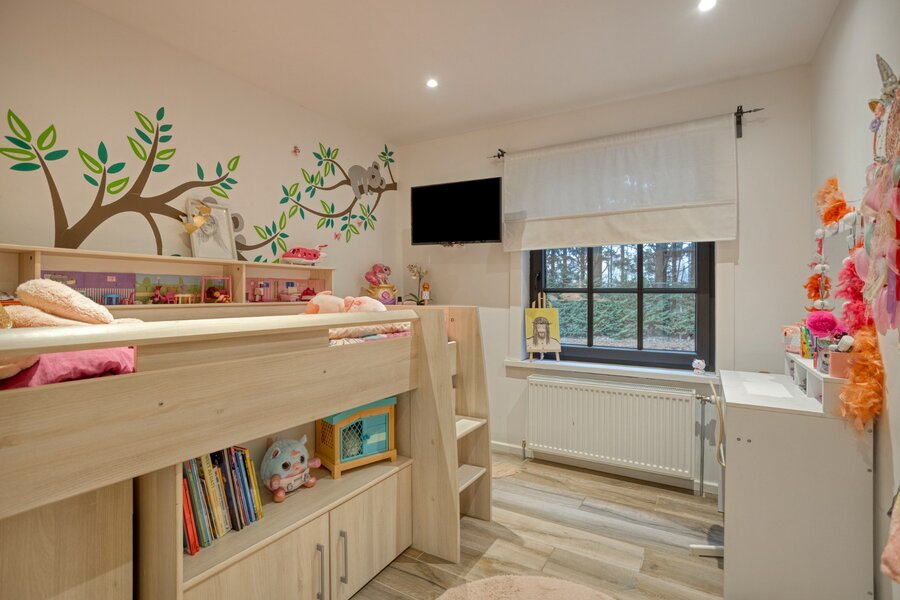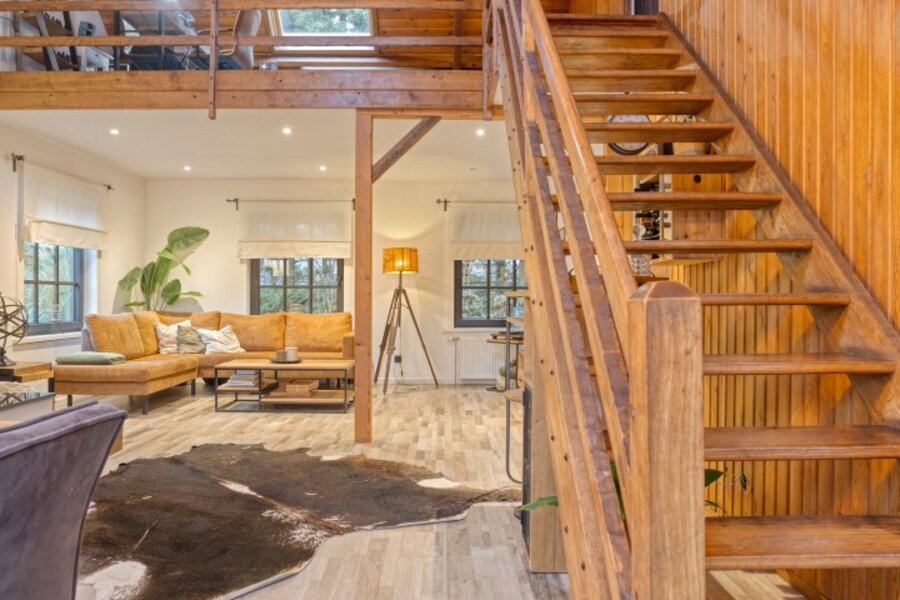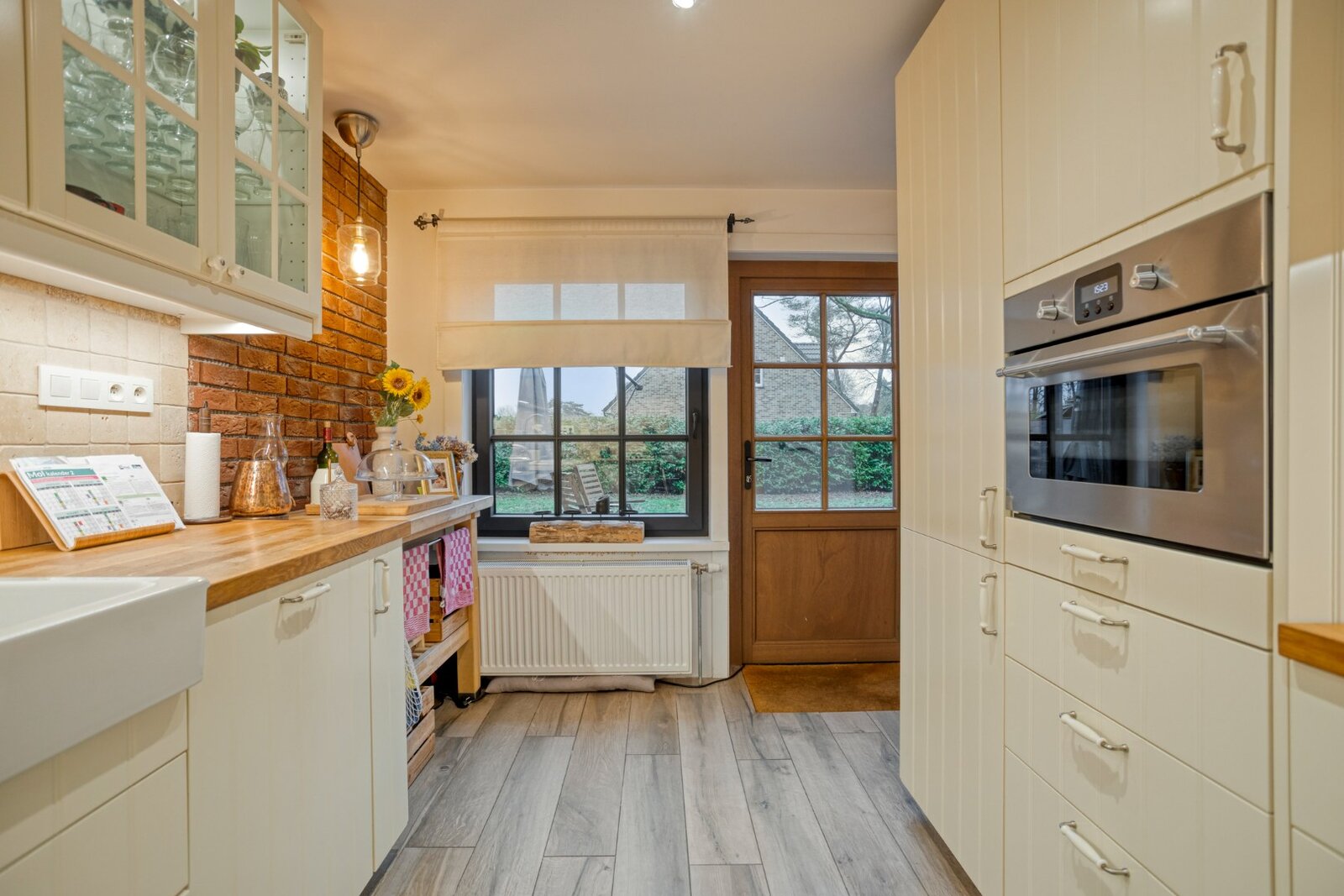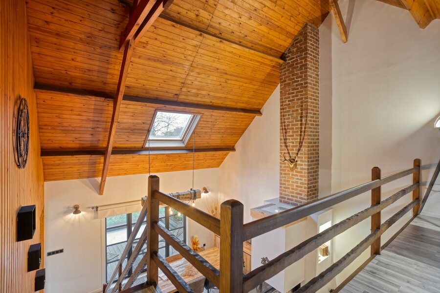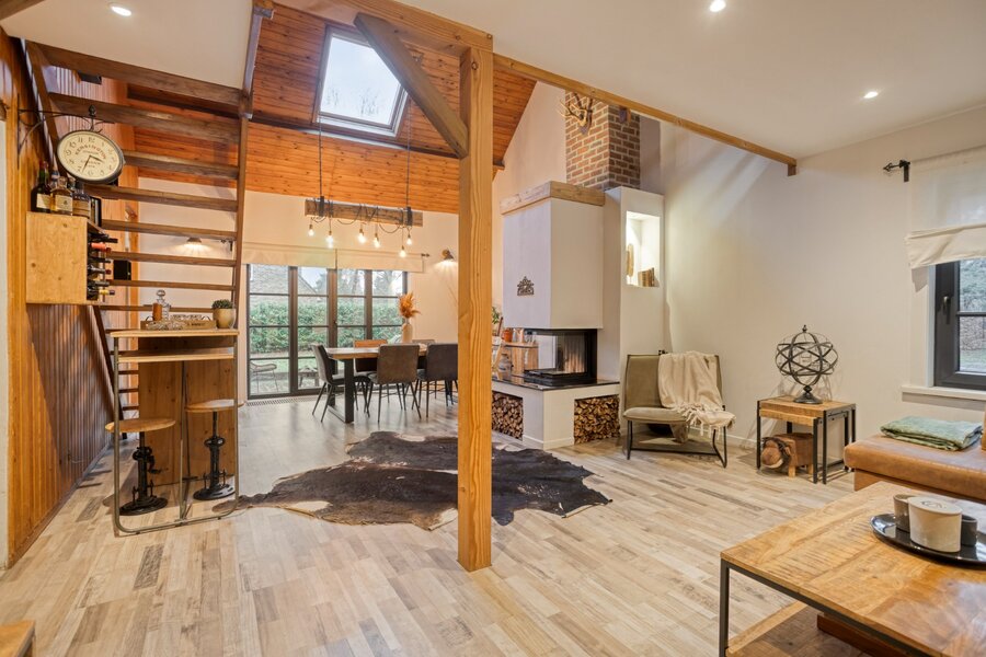 Bij binnenkomst word je verwelkomd in een mooie inkomhal die toegang biedt tot de woonkamer en nachthal. De sfeervolle ruime woonkamer beschikt over een houtkachel, wat bijdraagt aan een warme en gezellige sfeer. Deze woonkamer geniet aangenaam veel lichtinval, terwijl de nodige zonnewering zorgt voor een aangenaam binnenklimaat. De eetplaats in de leefruimte grenst aan de keuken en biedt een prachtig zicht over de tuin.