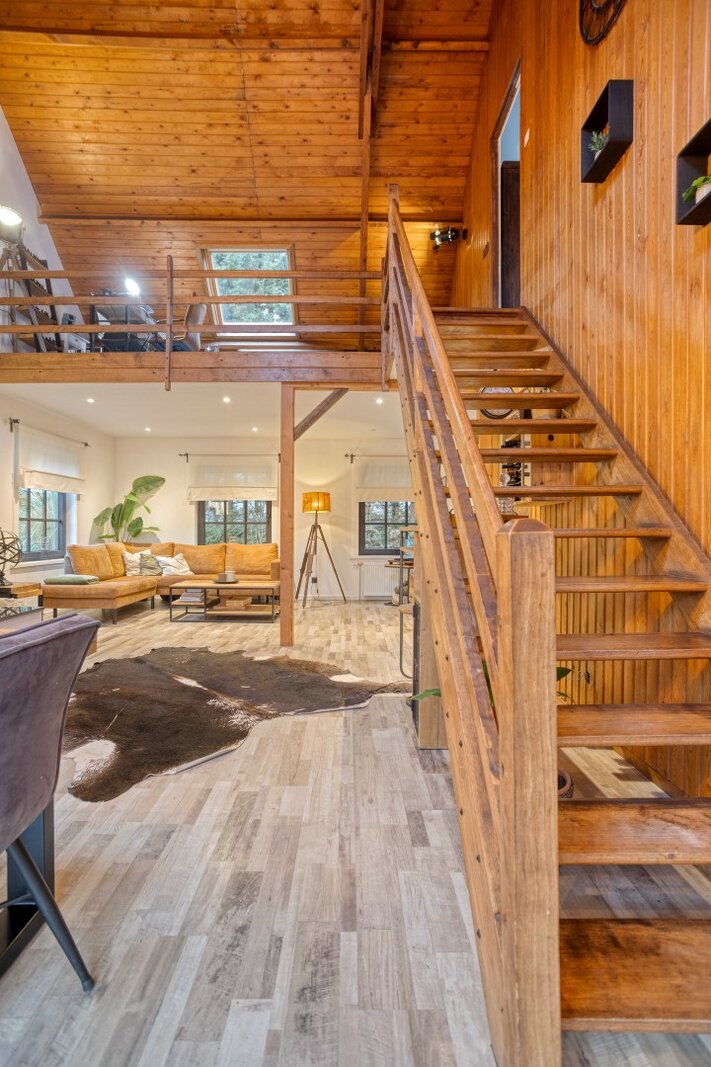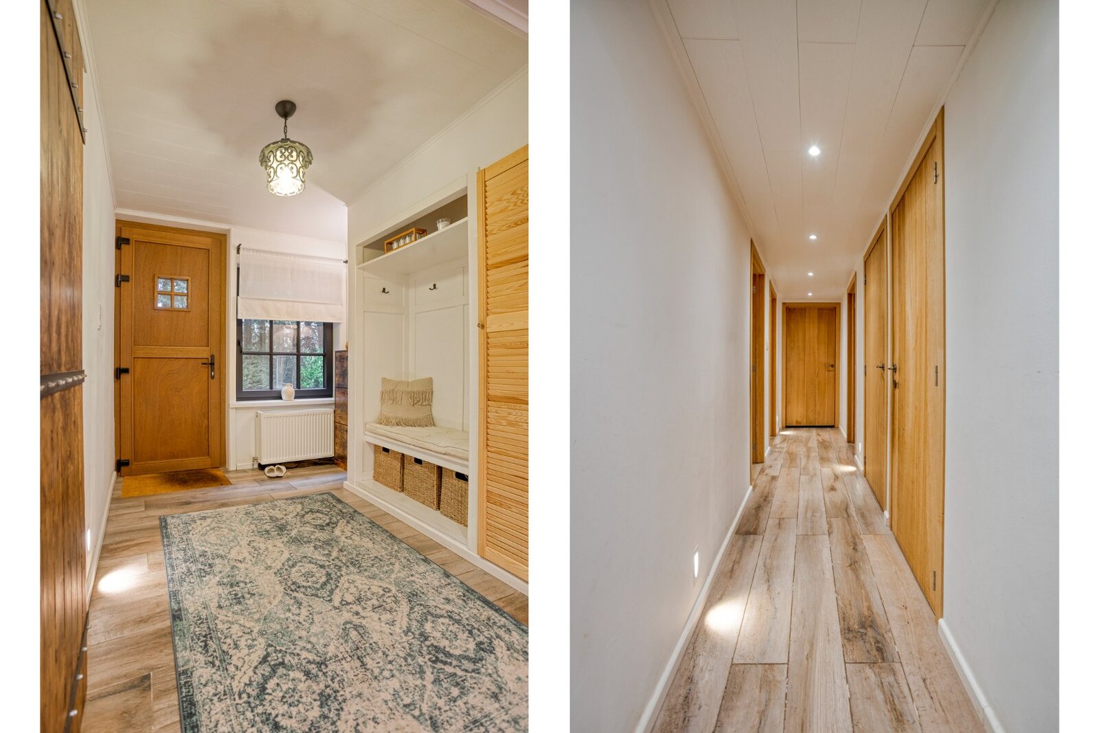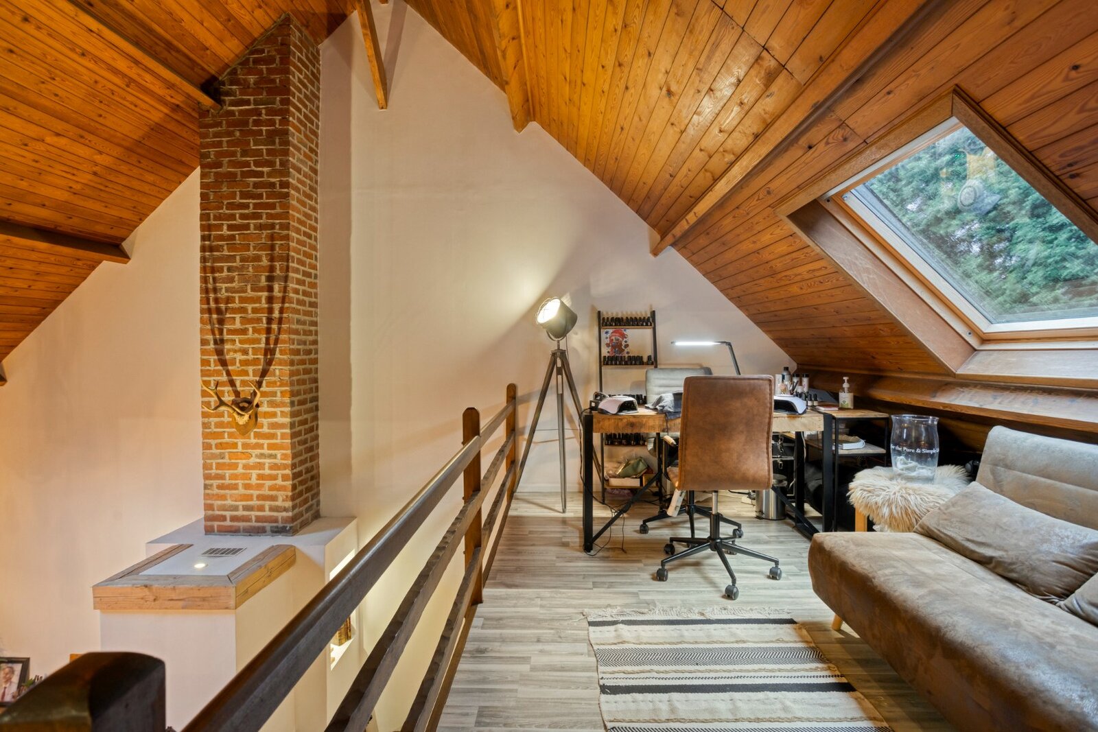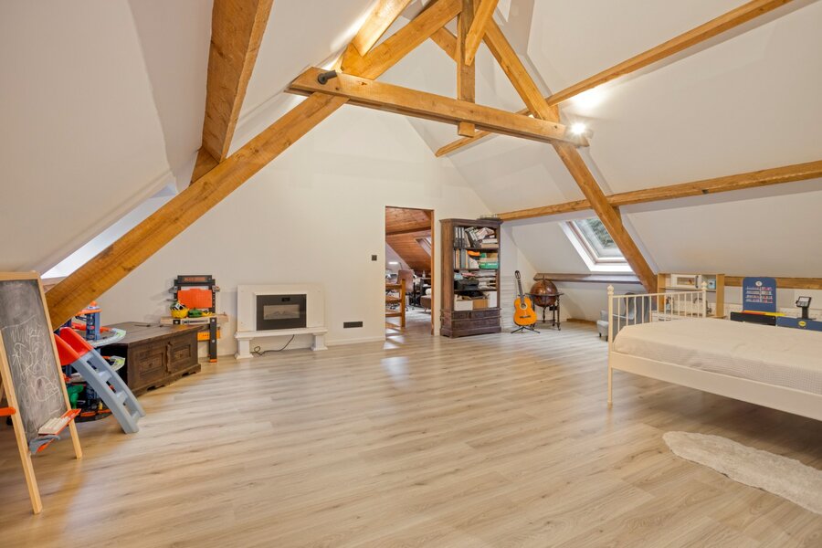Bij binnenkomst word je verwelkomd in een mooie inkomhal die toegang biedt tot de woonkamer en nachthal. De sfeervolle ruime woonkamer beschikt over een houtkachel, wat bijdraagt aan een warme en gezellige sfeer. Deze woonkamer geniet aangenaam veel lichtinval, terwijl de nodige zonnewering zorgt voor een aangenaam binnenklimaat. De eetplaats in de leefruimte grenst aan de keuken en biedt een prachtig zicht over de tuin.