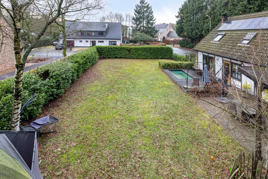 De tuin is volledig aangelegd en voorzien van diverse bomen, struiken en een ingebouwd zwembad, waardoor een groene en rustgevende buitenruimte ontstaat. Het prachtige bijgebouw is opgetrokken met een houtstructuur en kan prima ingericht worden als gezellige buitenhoek (deze is niet zichtbaar op de foto's).