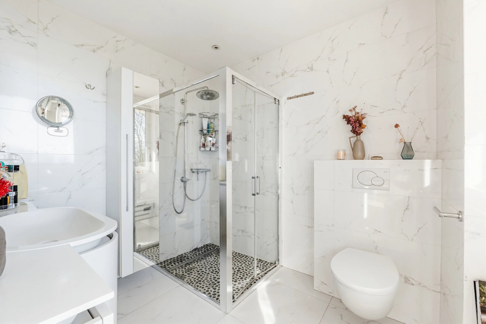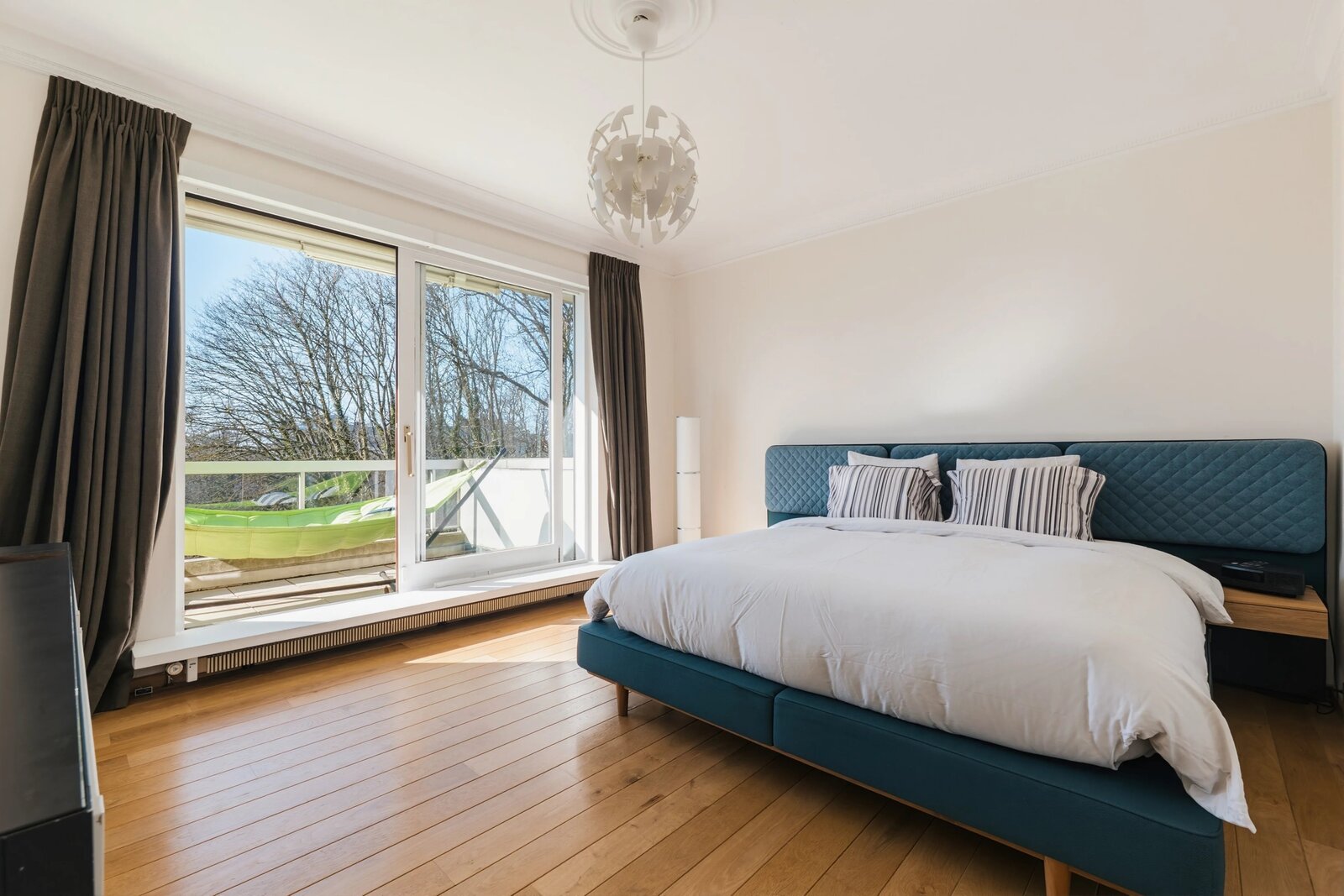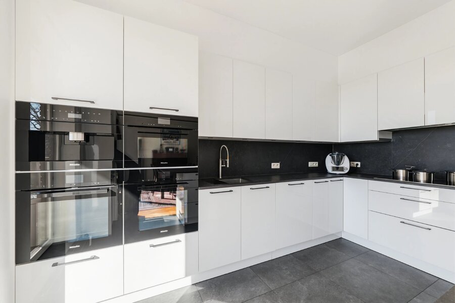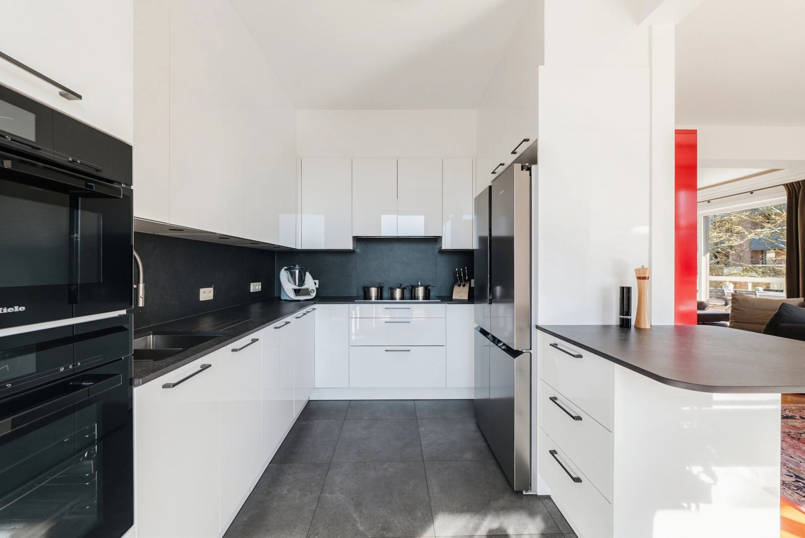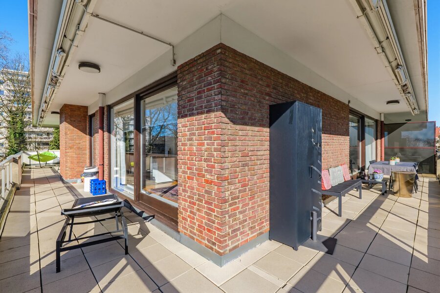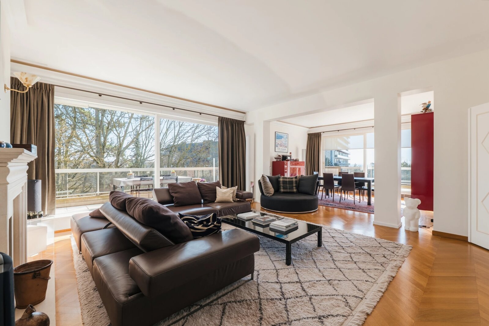 Les grandes baies vitrées donnant sur les terrasses inondent l'appartement de lumière naturelle tout en assurant une isolation thermique et acoustique optimale.
