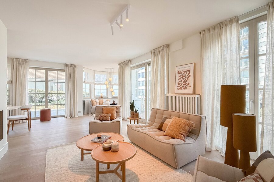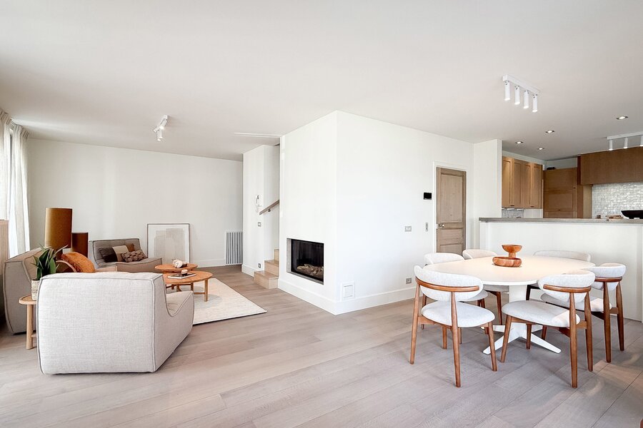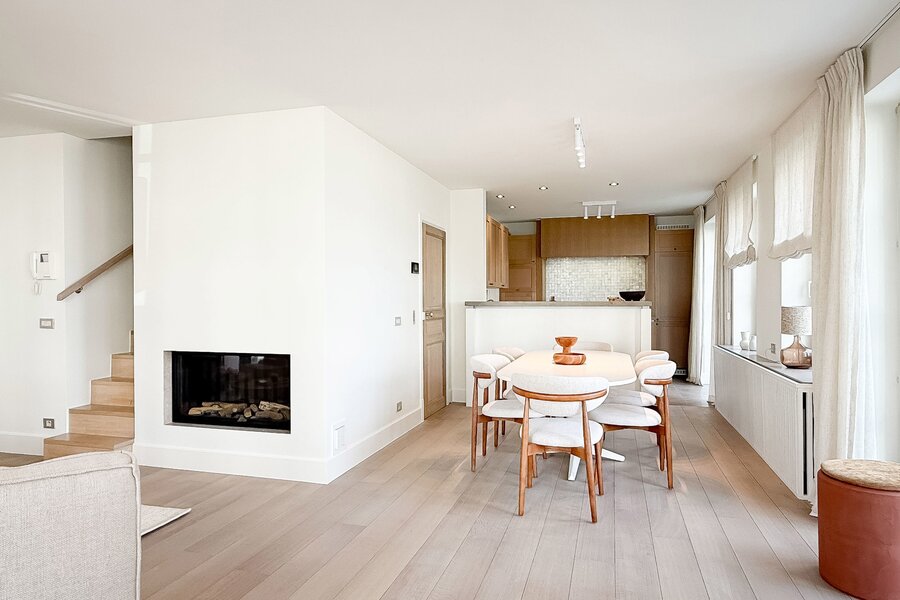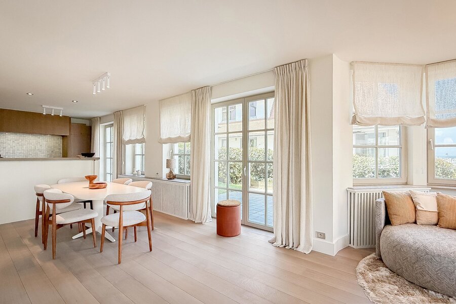 Situation exceptionnelle, à proximité du club de voile de Duinbergen, pour ce duplex d’environ 170 m², situé au rez-de-chaussée et au premier étage d’une élégante villa.
