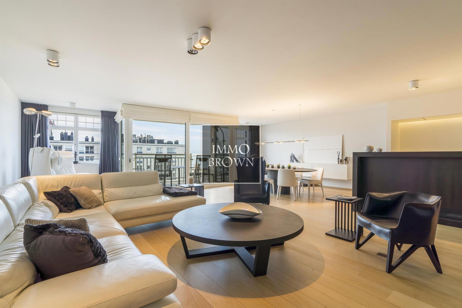 Appartement exclusif d'environ 163m² offrant des vues spectaculaires et des terrasses ensoleillées d'environ 17m², situé dans une résidence de caractère sur la mythique place Albert. Emplacement idéal au coeur du Zoute, à proximité immédiate des boutiques, de la mer et de la plage. L'appartement bénéficie d'une largeur de façade d'environ 8,6m et se situe au 6e étage de la résidence.