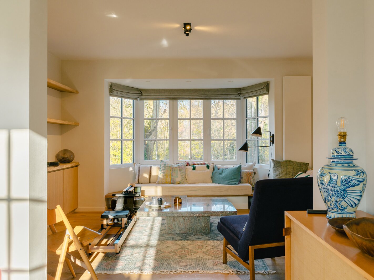 Au cœur d’un environnement verdoyant, la maison, meublée avec goût et raffinement, s’ouvre sur un hall d’entrée avec vestiaire et toilette invités et mène aux pièces de vie composées d’une cuisine séparée entièrement équipée, une salle à manger et un séjour agrémenté d’une cassette à bois fonctionnelle et d’une bibliothèque intégrée. Elles donnent accès à une terrasse et au jardin orienté Sud. Un bureau séparé complète l’ensemble. Au premier étage, la chambre principale avec dressing en suite et salle de bain complète et deux autres chambres partageant une salle de bain. A l’étage supérieur, une vaste family room avec de nombreux rangements intégrés. La maison est entourée d’un jardin offrant une belle luminosité dans toute la maison.