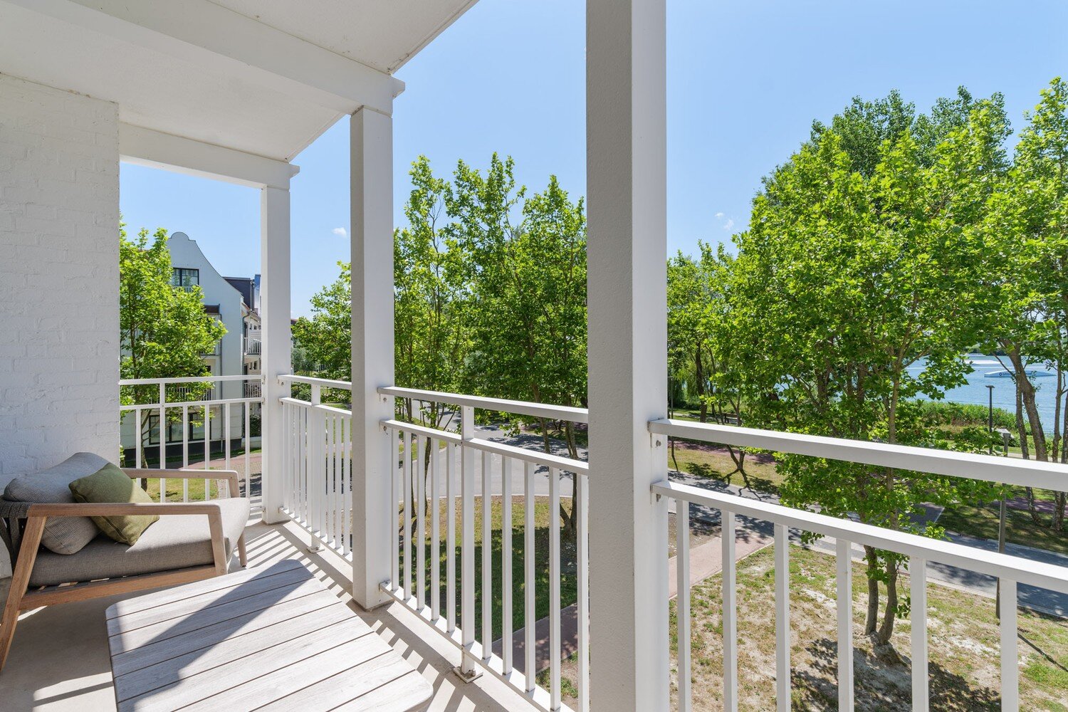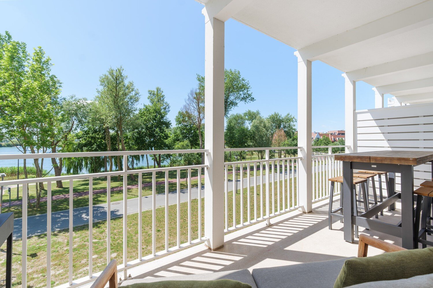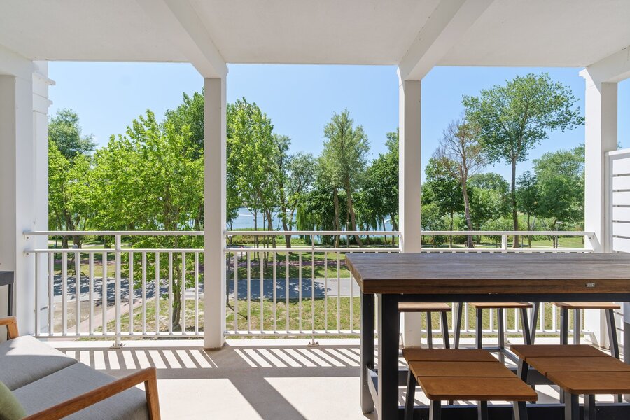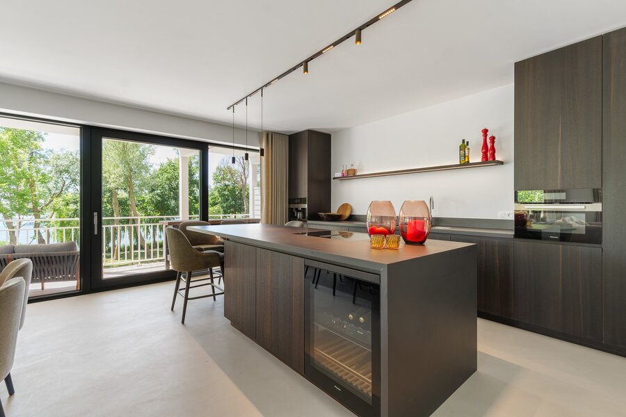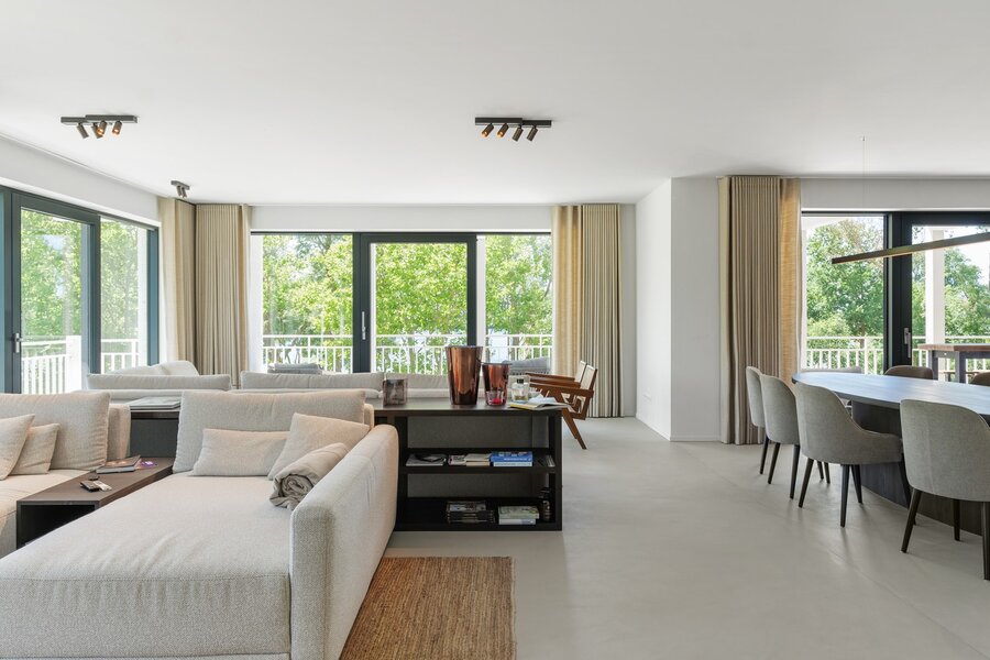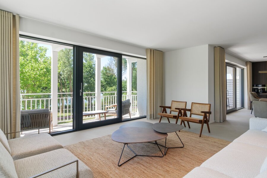 Dankzij de meerdere zonnige terrassen geniet u op elk moment van de dag van het buitenleven, met als absolute troef het prachtige zicht op het meer van Duinenwater – een oase van rust op wandelafstand van het bruisende centrum van Knokke.