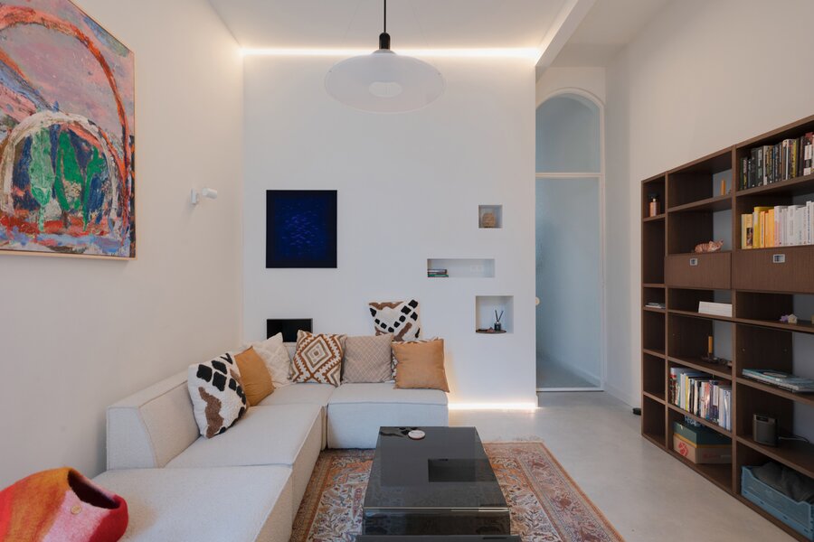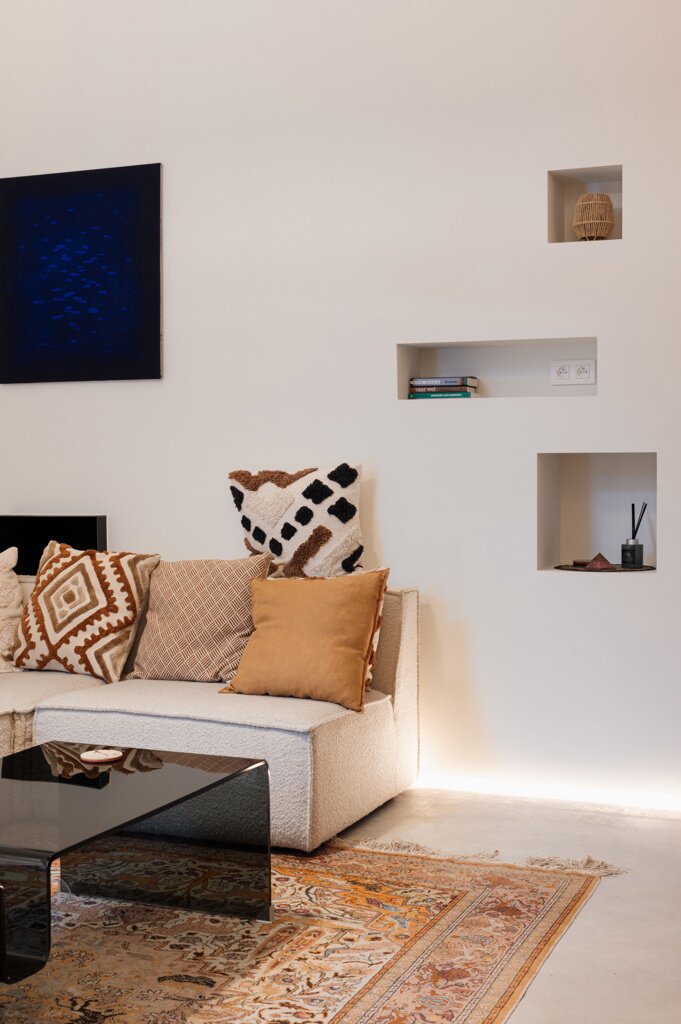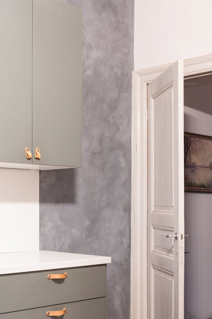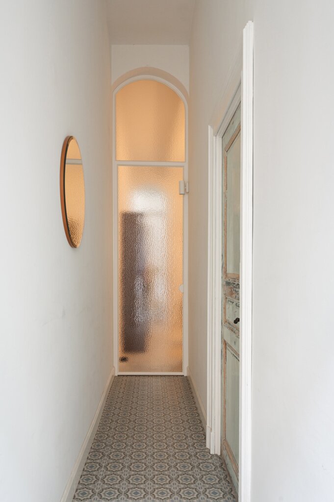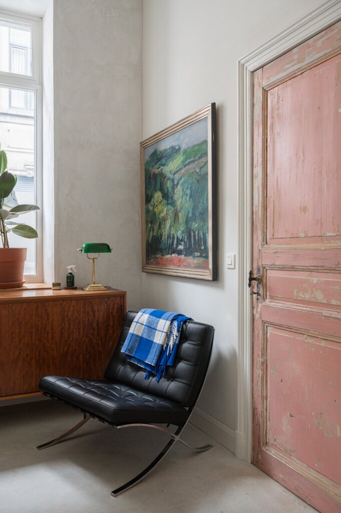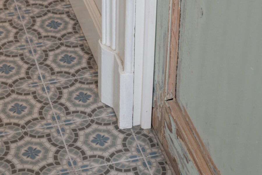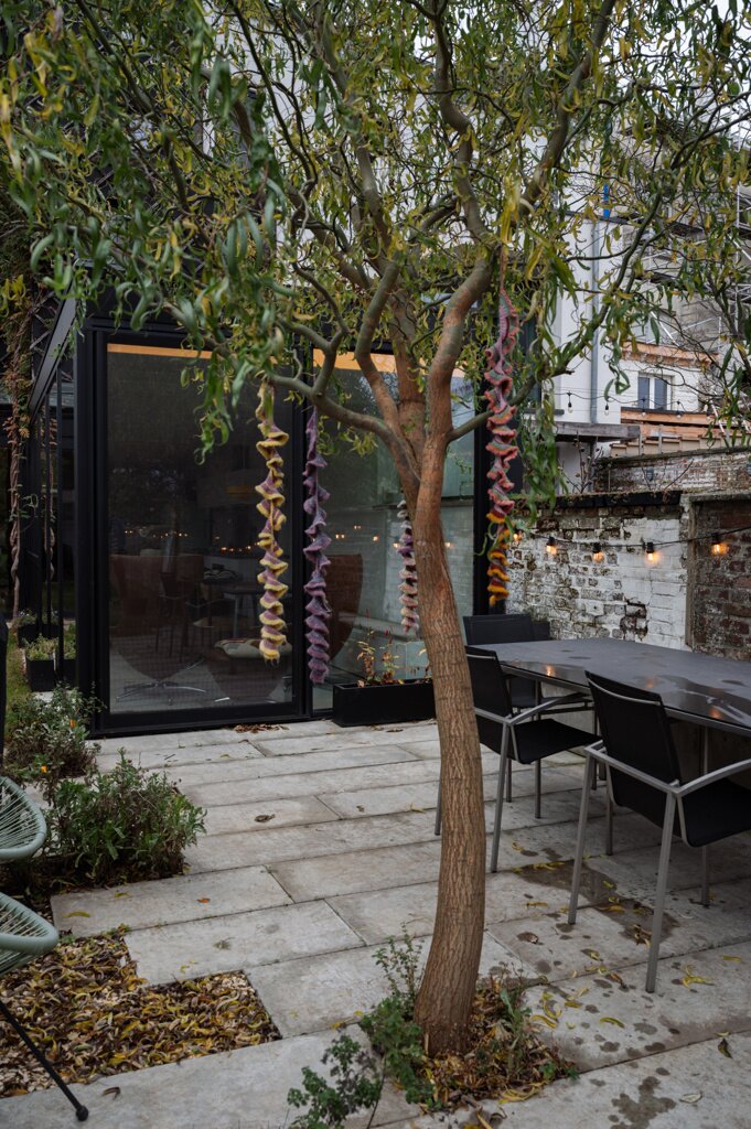 La façade bleu nuit, élégante et raffinée, l’annonce déjà : derrière celle-ci se cache une maison pleine de style. À l’intérieur, remarquez les éléments protégés soigneusement préservés, les rosaces authentiques, les hauts plafonds qui créent un beau volume, ainsi que l’aménagement intérieur particulièrement soigné.