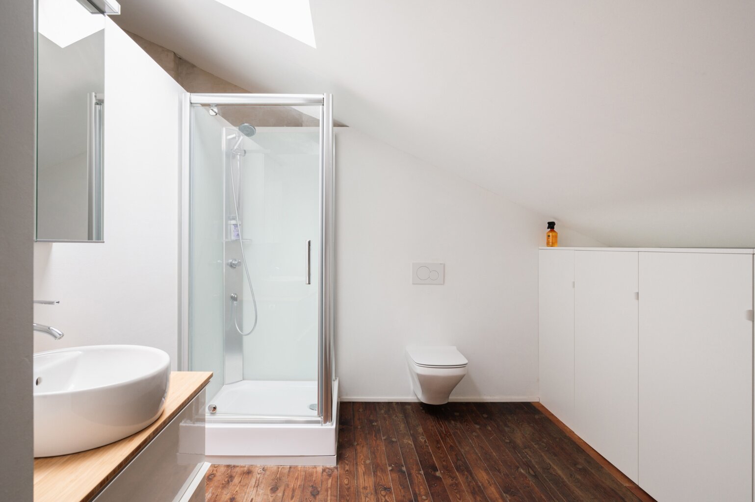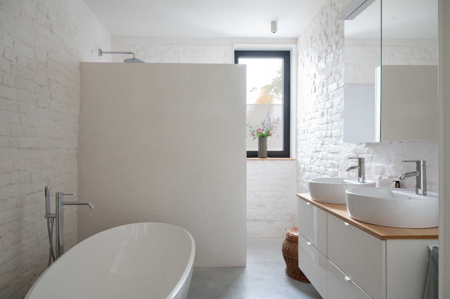 Réparties sur les étages +1, +2 et +3, vous trouverez au total cinq belles chambres, une salle de bains complète avec baignoire design et douche, ainsi qu’une salle d’eau supplémentaire attenante à la chambre parentale, avec douche, lavabo et toilettes – une configuration intéressante qui laisse encore beaucoup de possibilités d’aménagement selon vos envies et vos besoins.