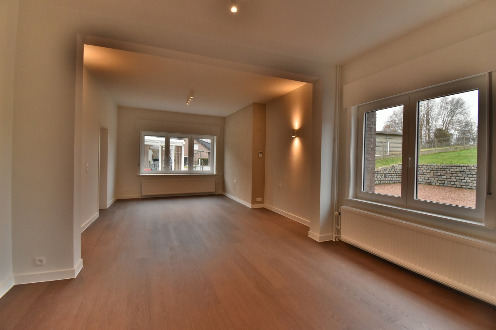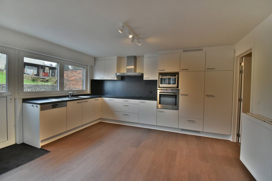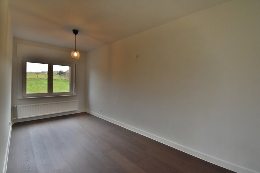 Cette maison vient d’être entièrement rénovée et se compose de : hall d’entrée + toilette séparée - living + salle à manger + cuisine ouverte (taque à induction, hotte, lave-vaisselle, four, réfrigérateur, micro-ondes) (+/-45m²) avec accès à la terrasse et au jardin - buanderie/local de rangement (+/-6m²) - bureau/chambre 1 (+/-14m²) - pièce de rangement/atelier (sans fenêtres) (+/-10m²).