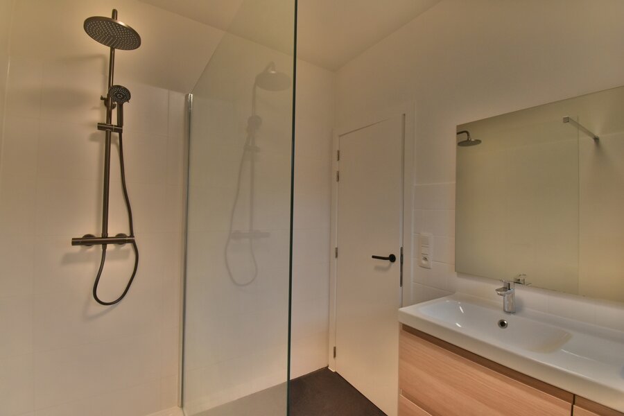 Premier étage: 3 chambres (+/-12m², +/-14m², +/-19m²) - salle de bain (douche à l’italienne, double lavabo) (+/-5m²) - toilette séparée - espace de rangement/dressing (+/-2m²)