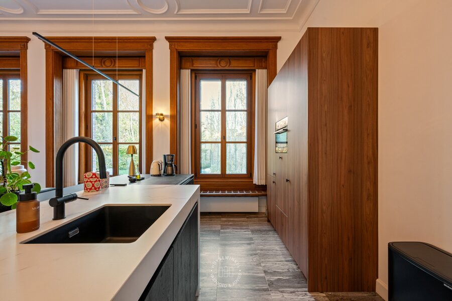 Dit uniek, volledig gerenoveerd appartement bevindt zich op het gelijkvloers van een karaktervolle kasteelvilla. Deze onderging in 2022 een totaalrenovatie waarbij het originele gebouw uit de jaren 1900 werd omgevormd tot een kleinschalige residentie, met oog voor kwaliteit, karakter en hedendaags wooncomfort.