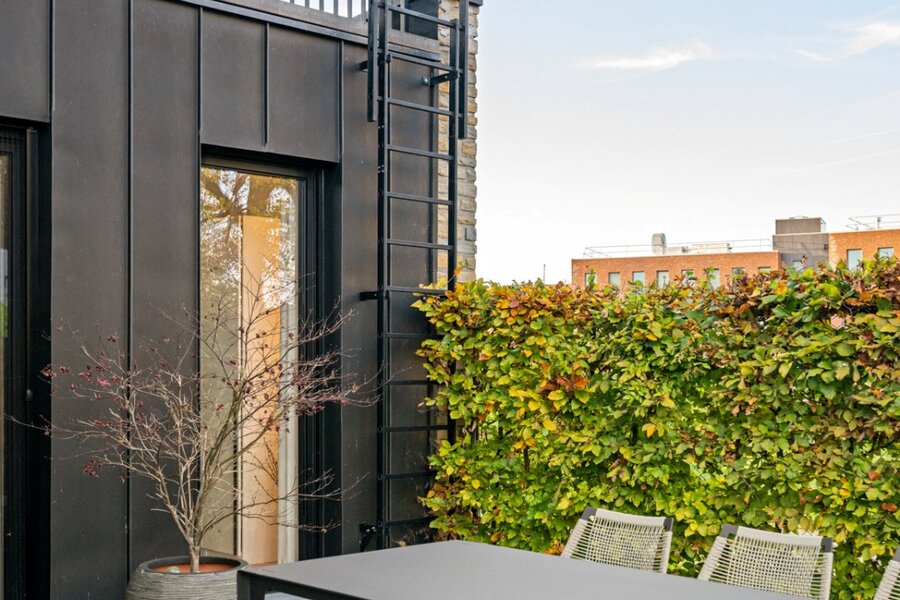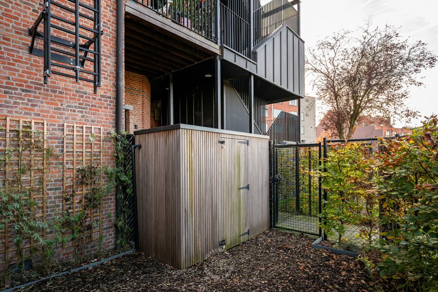 Het appartement beschikt over twee afzonderlijke buitenruimtes. Aansluitend aan de leefruimtes vindt u het grote terras en de zonnige tuin, waar de groene omgeving rust en privacy garandeert. Aan de slaapkamer bevindt zich een tweede terras met tuinberging en toegang tot het achterliggende park en de kelderbergingen. Er bestaat ook de mogelijkheid om een staanplaats aan te kopen voor het gebouw.