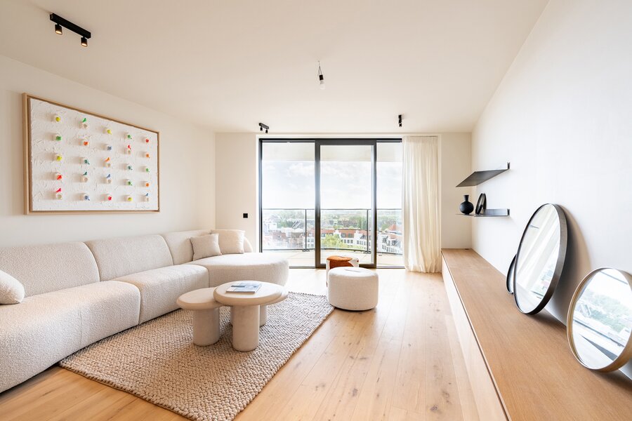 Grâce aux grandes baies vitrées, vous profitez toute la journée de lumière naturelle, d’espace et d’une vue dégagée sur Knokke.