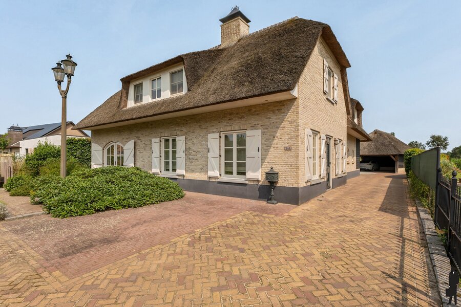Prachtige rietgedekte villa met zwembad en poolhouse gelegen op een schitterende locatie in Poppel waar u geniet van rust en ruimte op een perceel van ca. 2.226 m². De woning van circa 400m² biedt 3 slaapkamers en 3 badkamers is geheel onderkelderd, heeft een verwarmd zwembad, dubbele carport, poolhouse met sauna en een achterliggend weiland met paardenstal. De villa uit 2010 is energiezuinig en heeft label B.