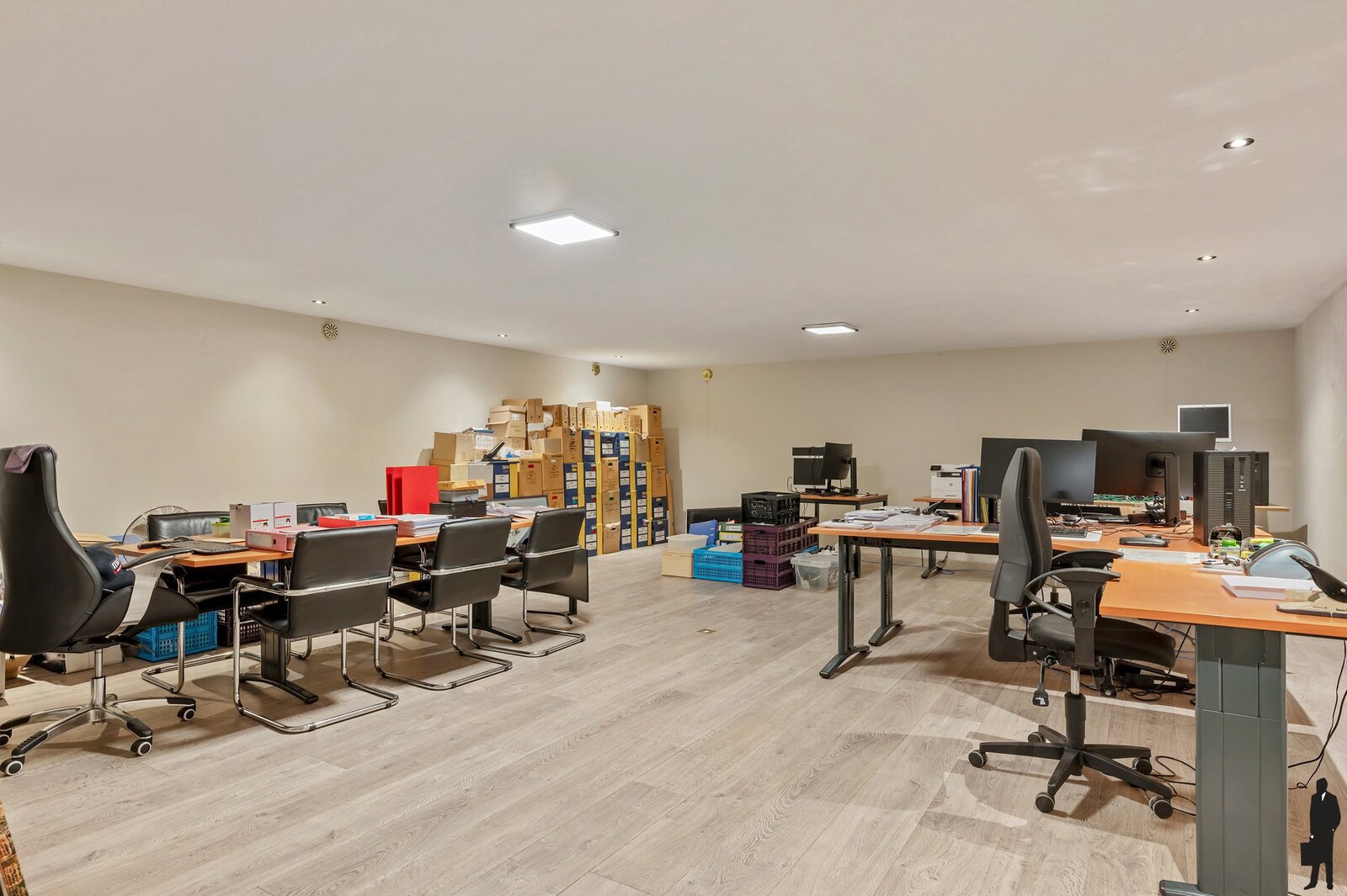 Open werkkamer met ingebouwde kasten .