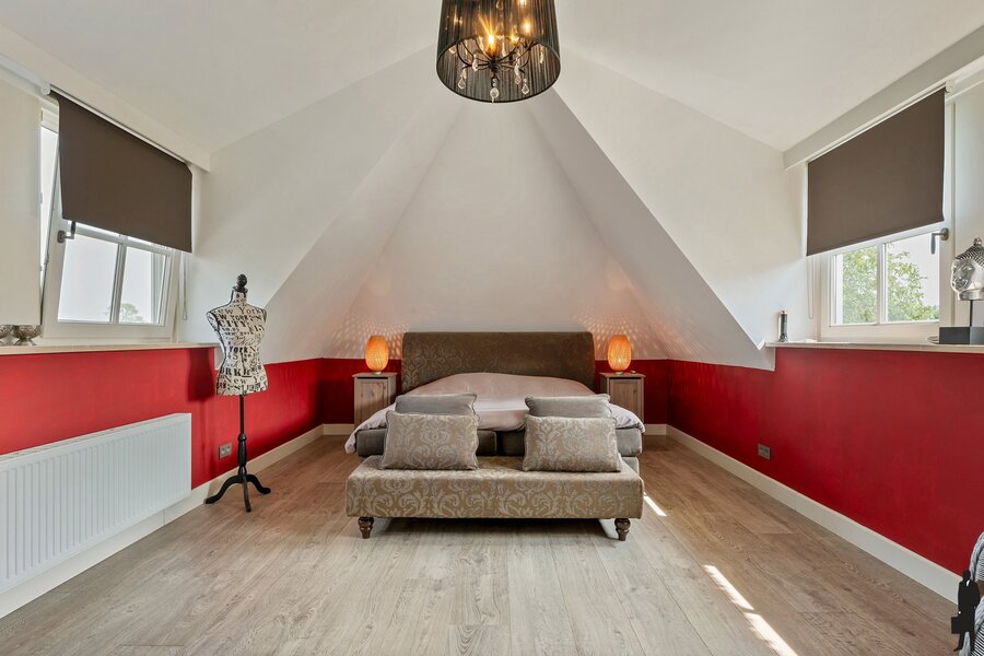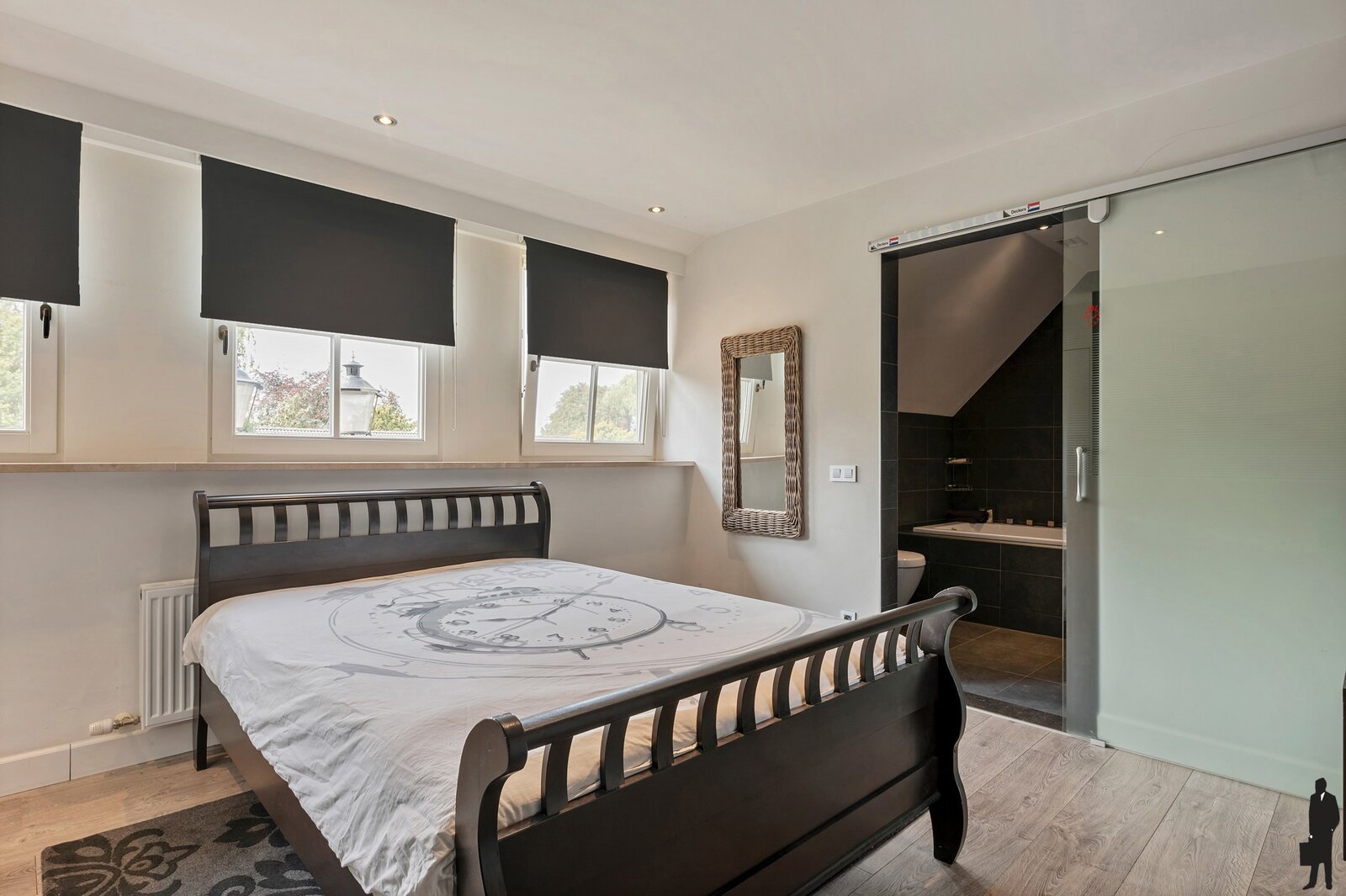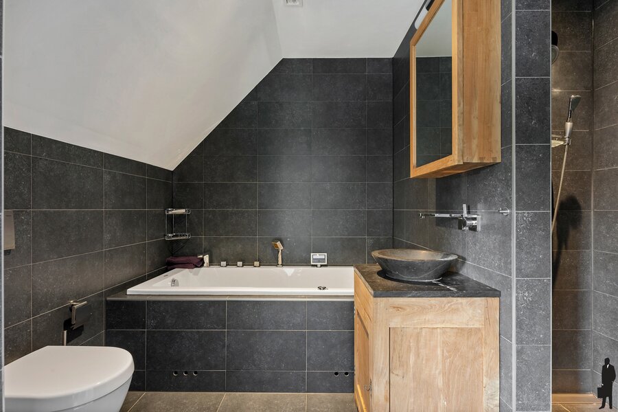 Derde slaapkamer met toegang tot eigen badkamer voorzien van ligbad, wastafel en toilet.
