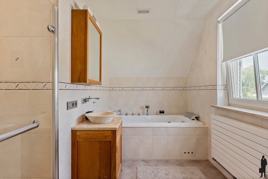 Tweede slaapkamer met toegang tot eigen badkamer voorzien van ligbad, douche en toilet.