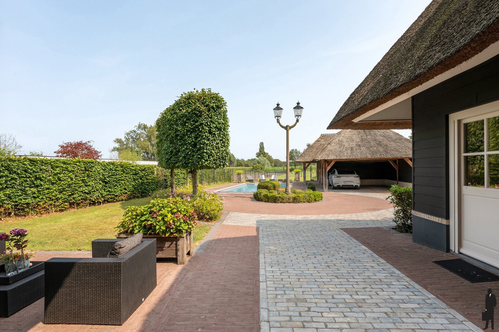 Rietgedekte villa met zwembad, poolhouse, weiland op 2.226m²