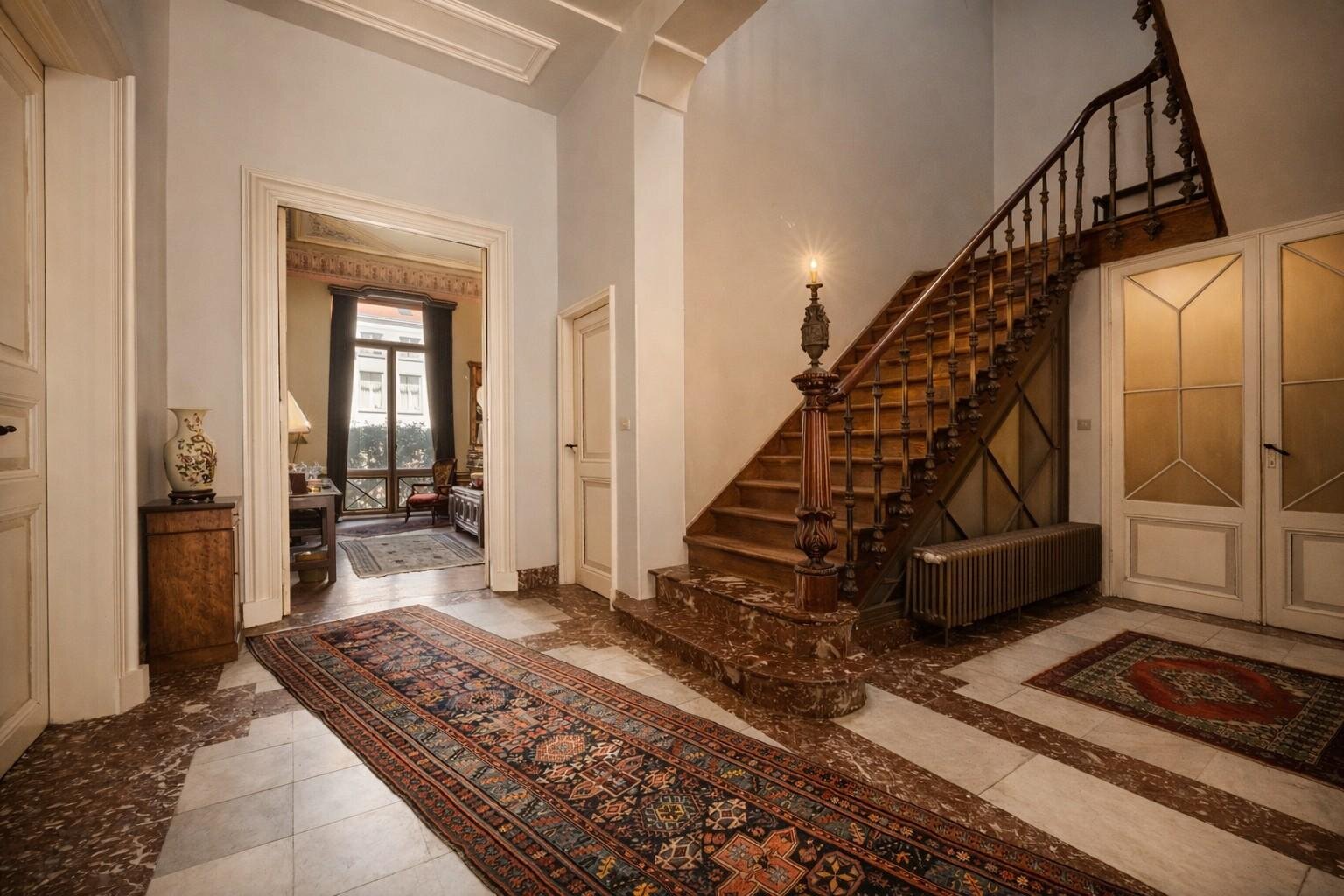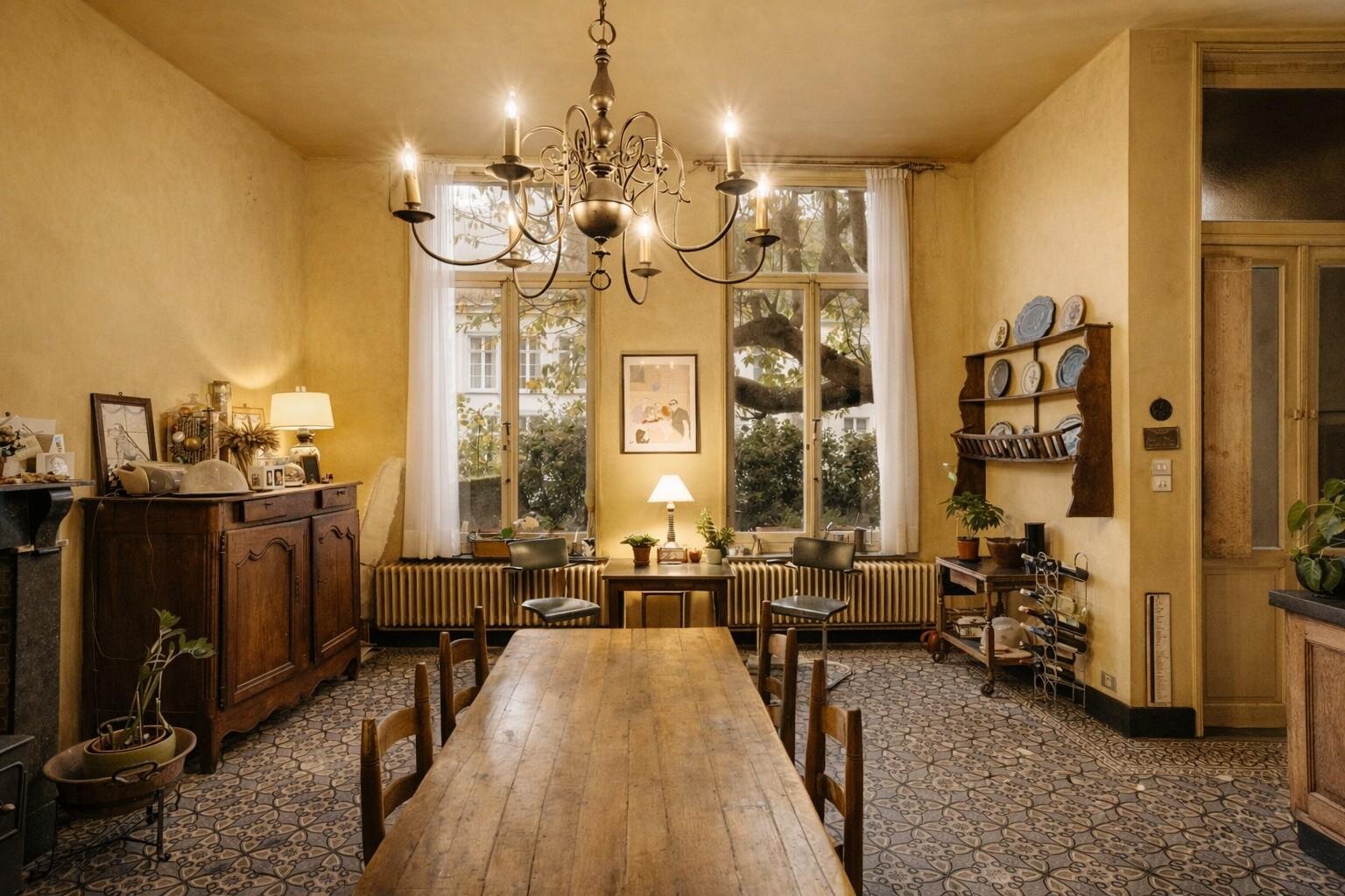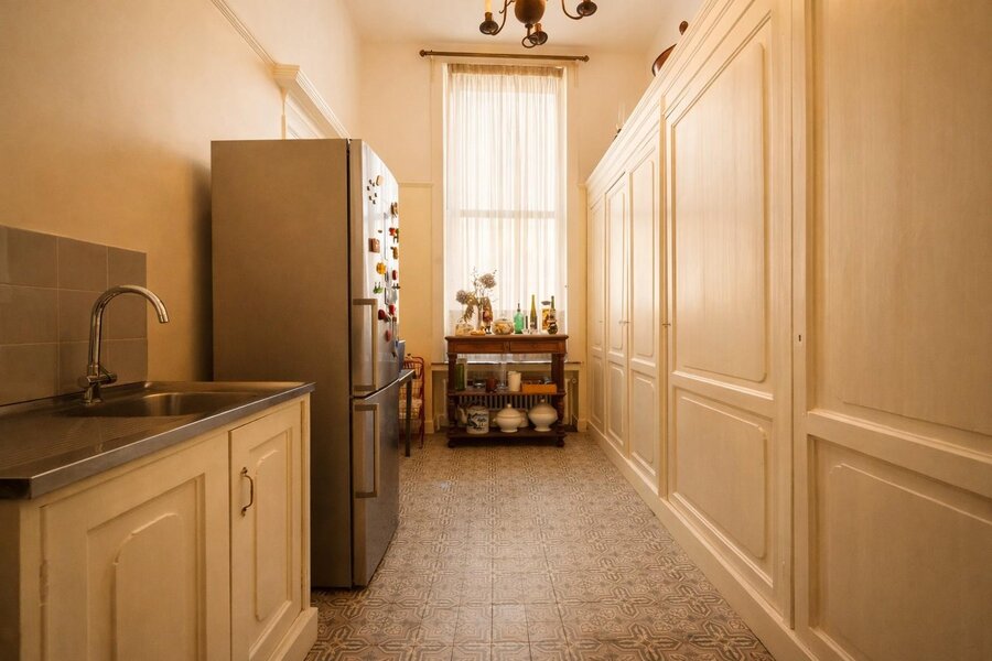Met een volledige onderkeldering en verschillende salons op het gelijkvloers biedt deze woning een unieke kans voor liefhebbers van authentieke charme en historisch erfgoed. Hoewel de woning barst van de grandeur en stijlvolle elementen, biedt ze eveneens een prachtig canvas voor renovatie. Met een respectvolle renovatie kunnen de indrukwekkende ruimtes en originele details opnieuw tot hun volle glorie worden gebracht. Een ideaal project voor wie droomt van een luxueuze en unieke woonplaats, vol geschiedenis en karakter, midden in het hart van de stad.