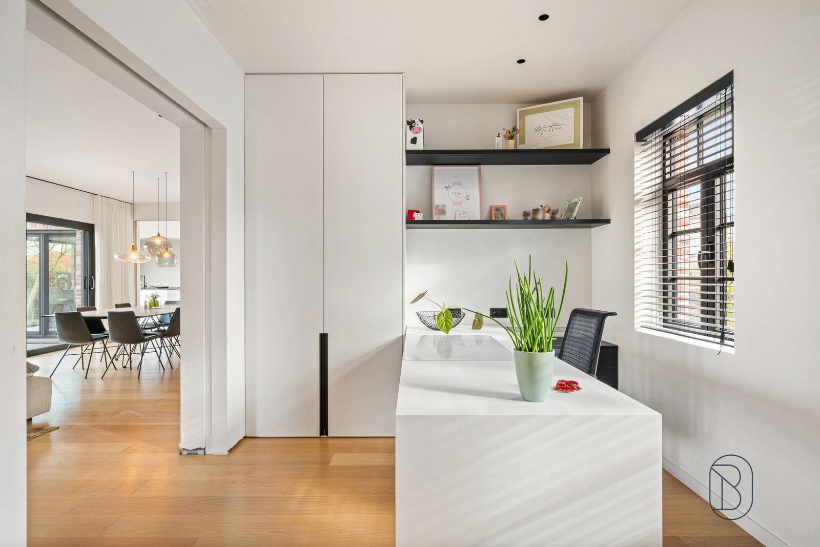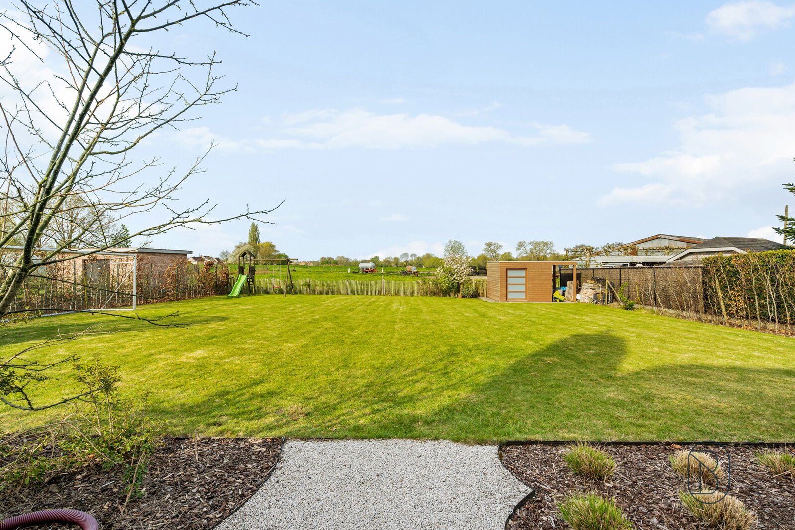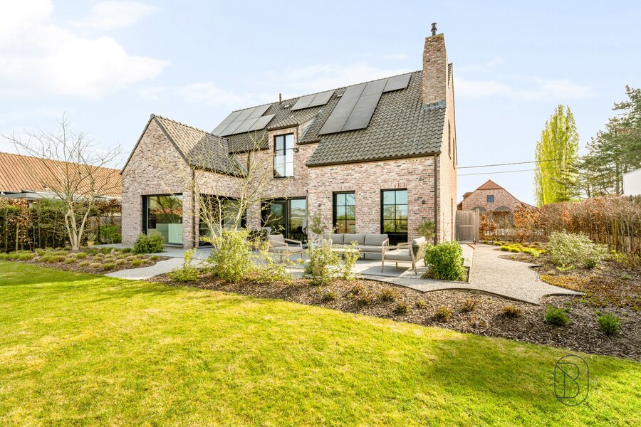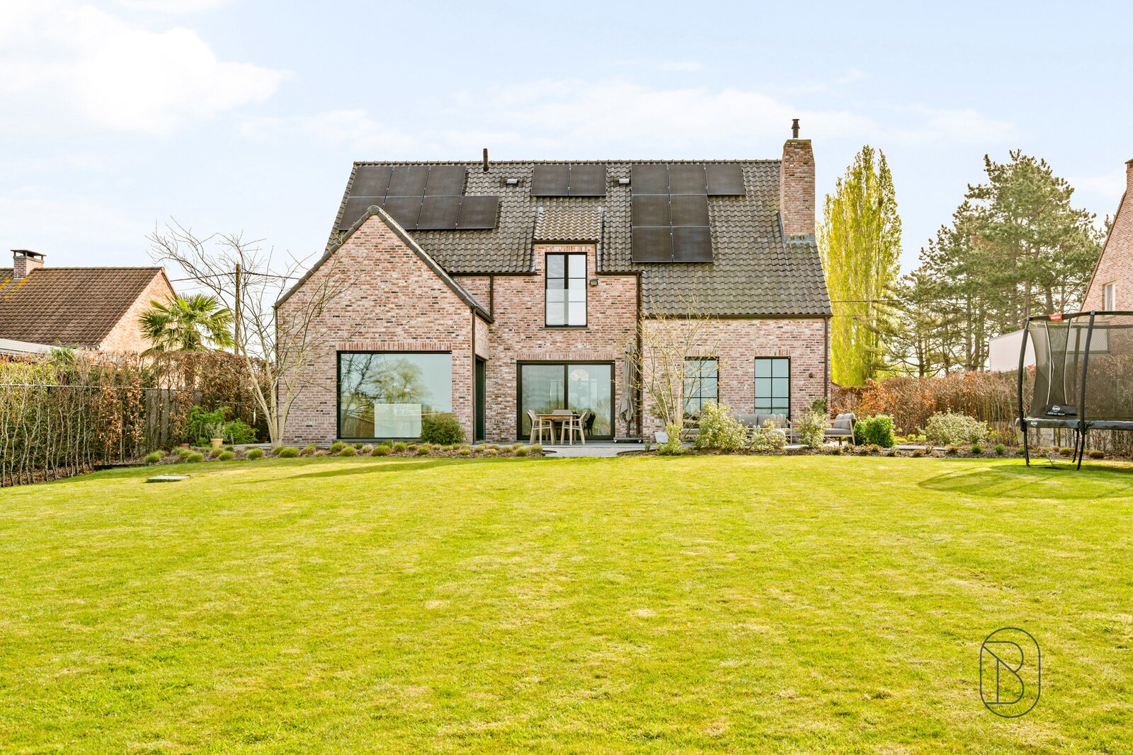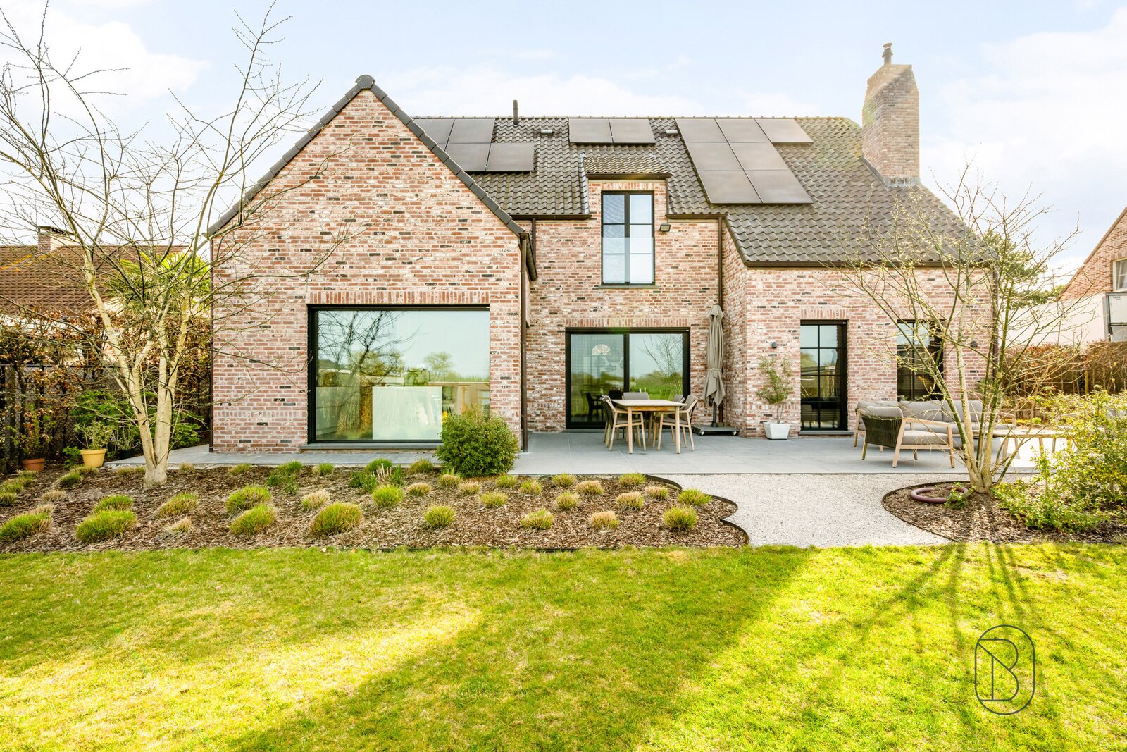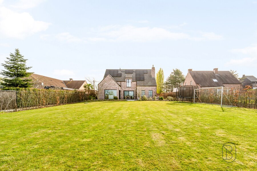 Le hall d'entrée, doté de toilettes séparées, donne accès au salon lumineux, équipé d'une agréable cheminée à gaz. La cuisine ouverte s'y intègre parfaitement et offre un accès direct à la terrasse et au jardin. Le rez-de-chaussée comprend également un garage spacieux et un espace bureau. L'étage comprend quatre chambres à coucher spacieuses, une salle de bains spacieuse et un dressing. À l'extérieur, vous profiterez d'un magnifique jardin aménagé.