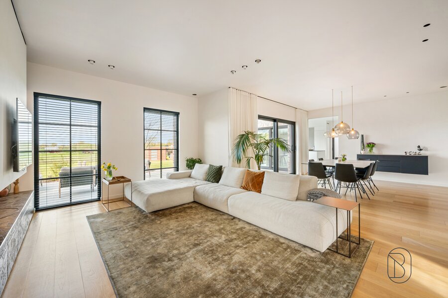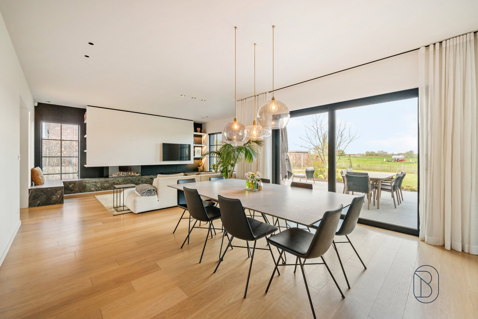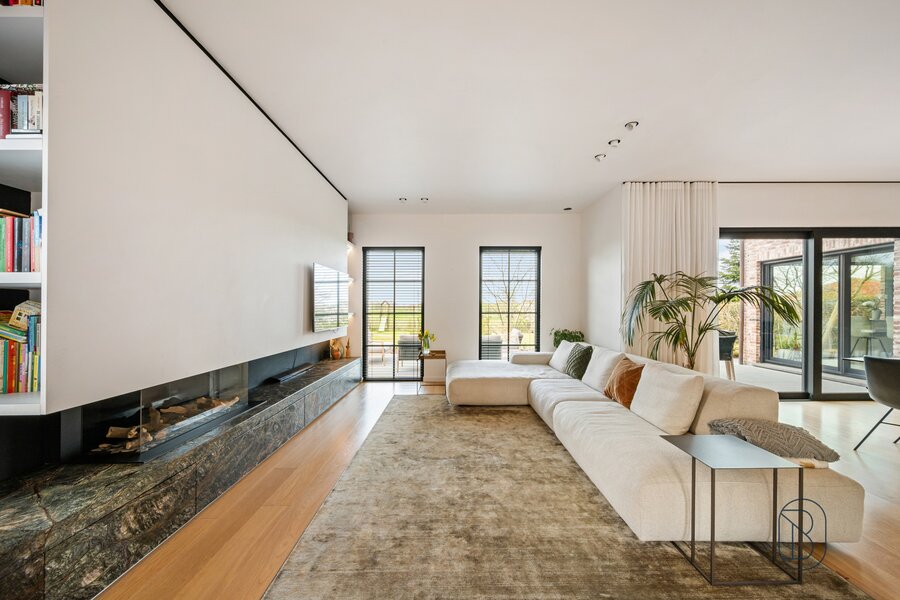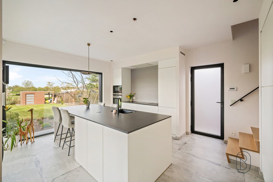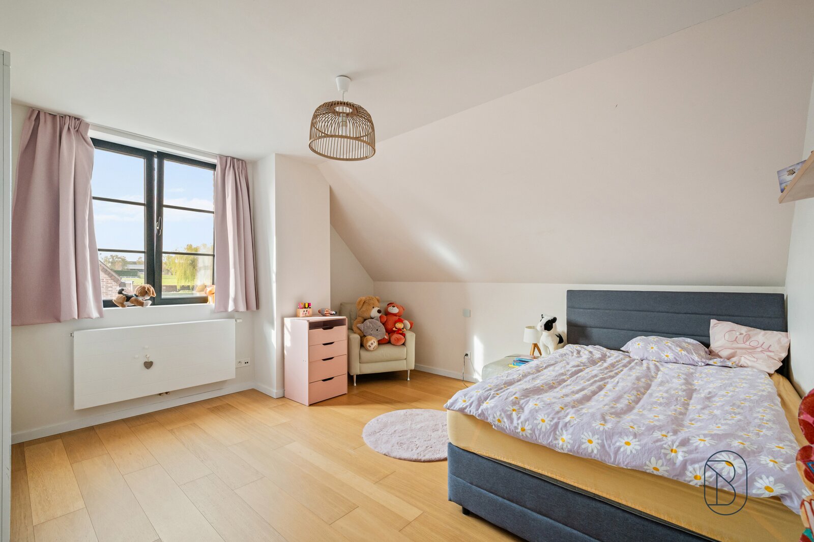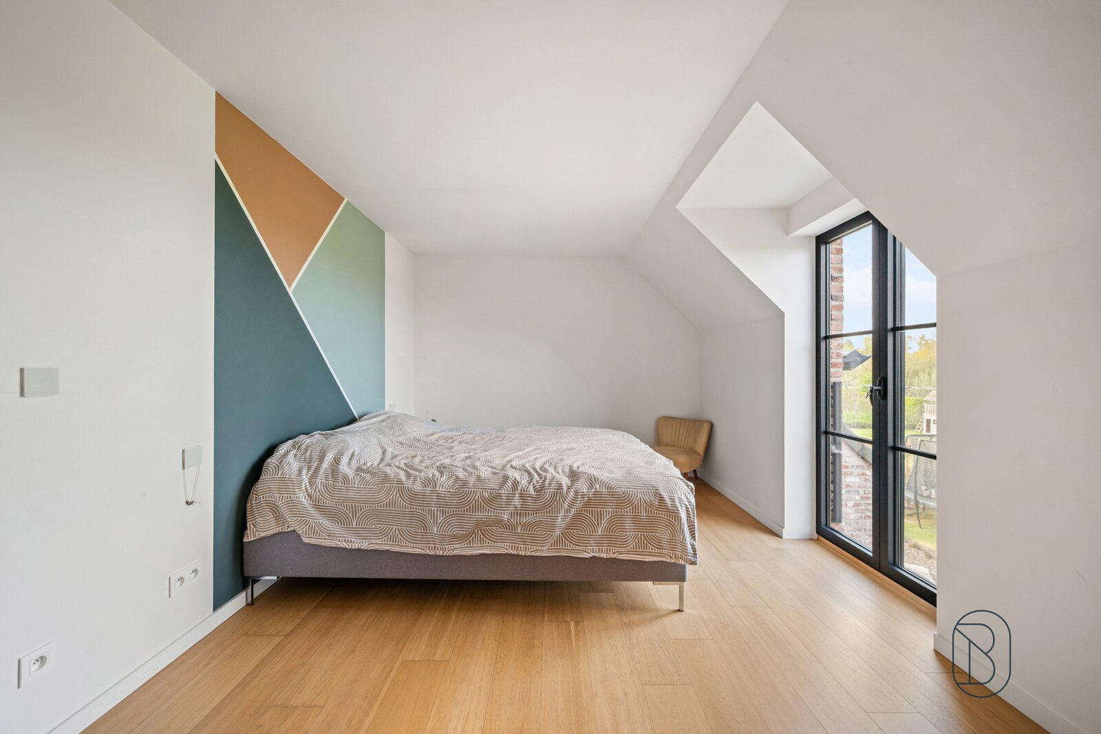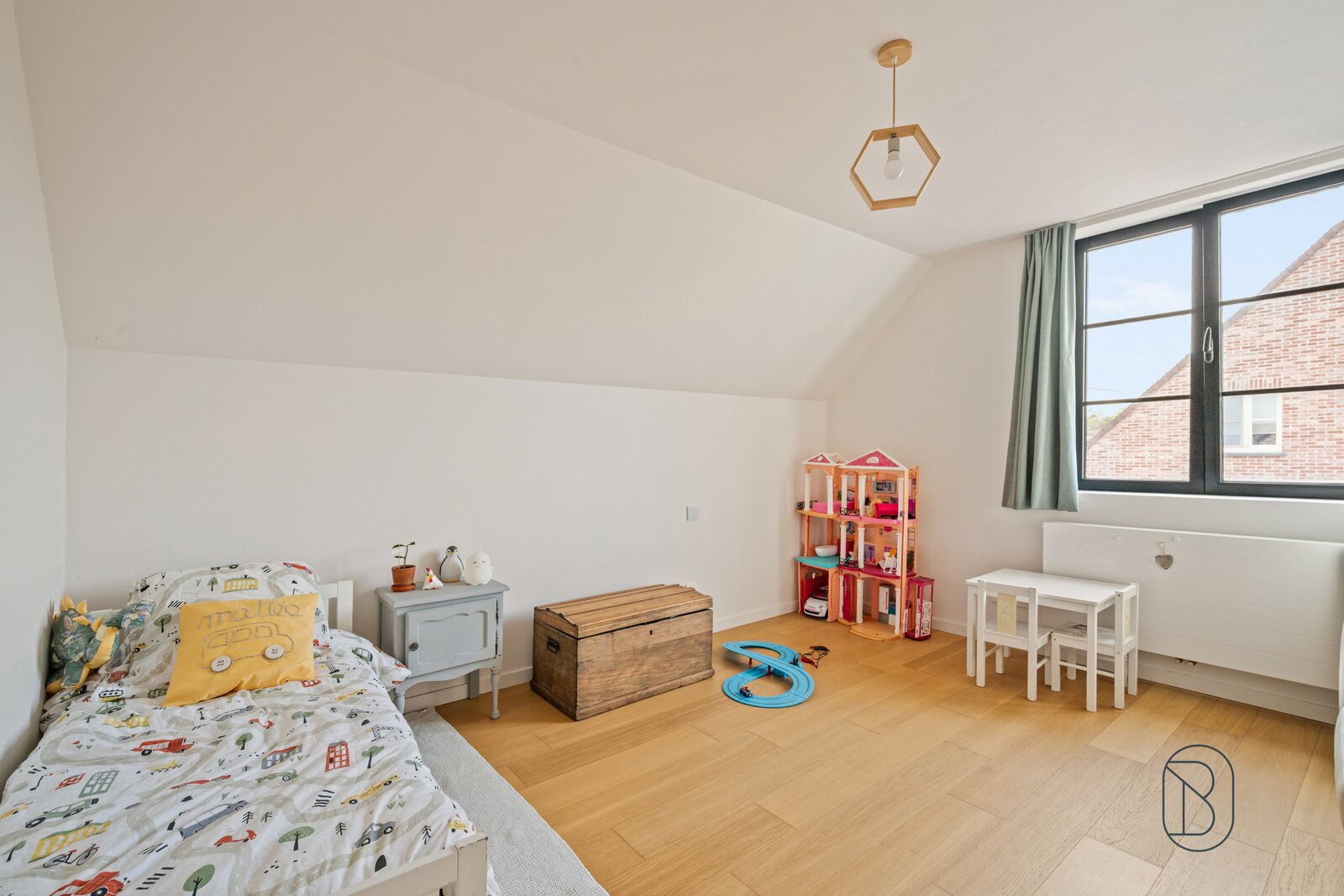 Le hall d'entrée, doté de toilettes séparées, donne accès au salon lumineux, équipé d'une agréable cheminée à gaz. La cuisine ouverte s'y intègre parfaitement et offre un accès direct à la terrasse et au jardin. Le rez-de-chaussée comprend également un garage spacieux et un espace bureau. L'étage comprend quatre chambres à coucher spacieuses, une salle de bains spacieuse et un dressing. À l'extérieur, vous profiterez d'un magnifique jardin aménagé.