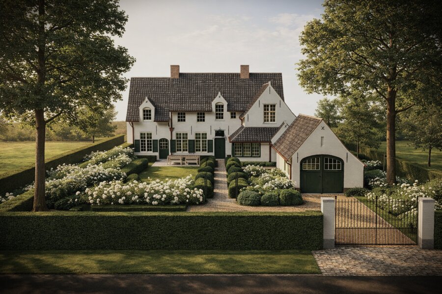 Voor deze eigendom werd reeds vrijblijvend een doordacht architecturaal concept uitgewerkt door architect François Van Damme. De tijdloze landelijke architectuur sluit perfect aan bij de omgeving en combineert elegantie met hedendaags comfort. Grote raampartijen, een optimale oriëntatie en een harmonieuze integratie met de tuin creëren een uitzonderlijke woonbeleving.