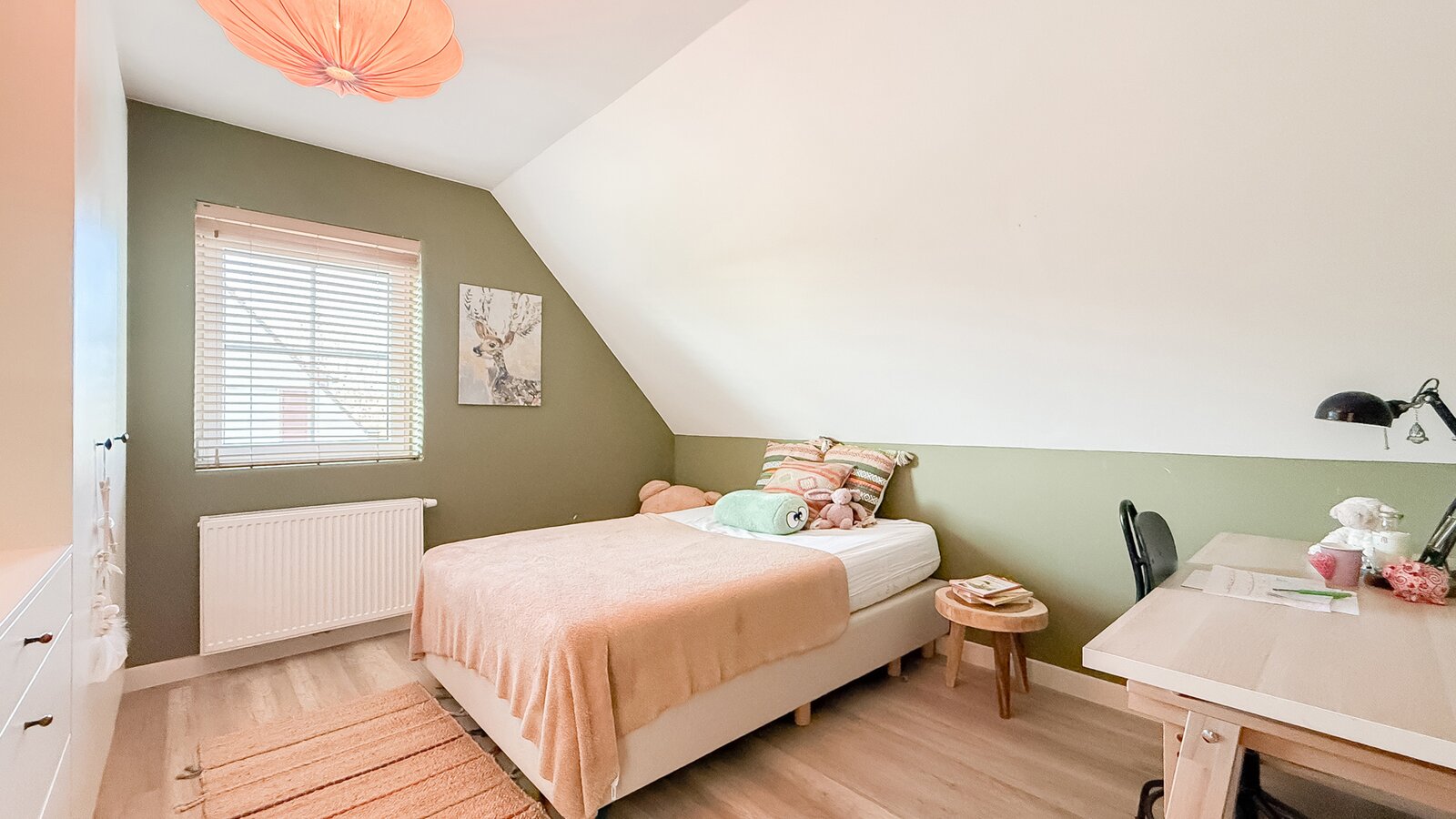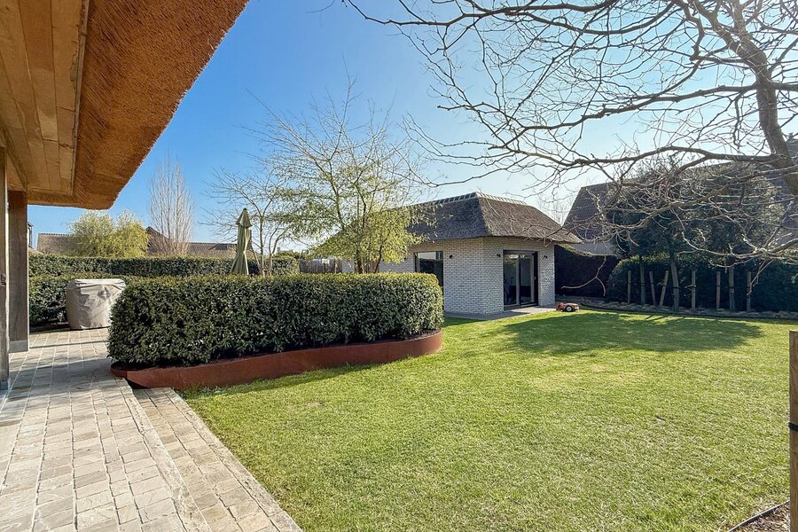 Le jardin magnifiquement aménagé, avec des zones vertes soignées, dégage calme et intimité. À l’arrière se trouve un grand annexe offrant de nombreuses possibilités.